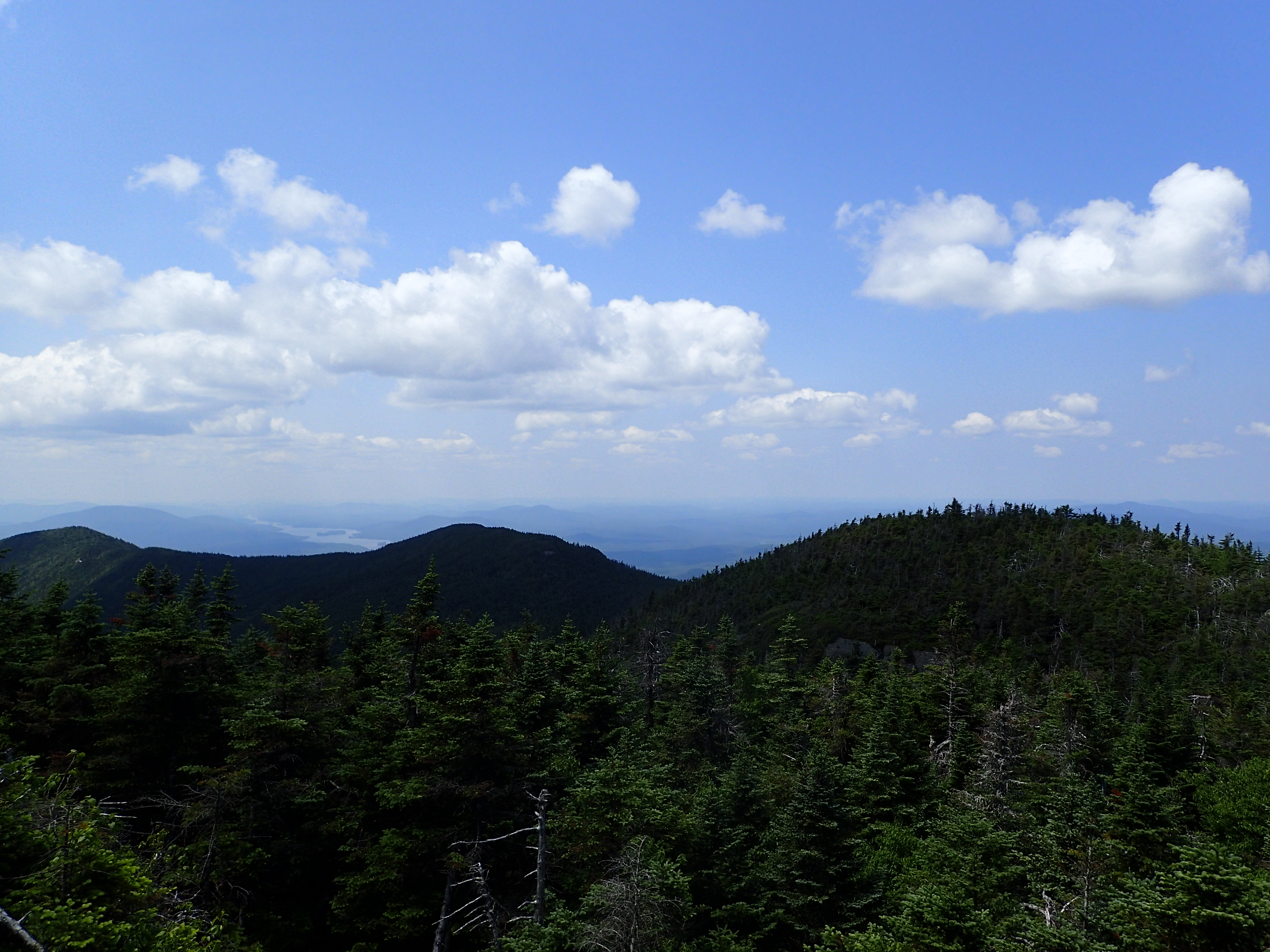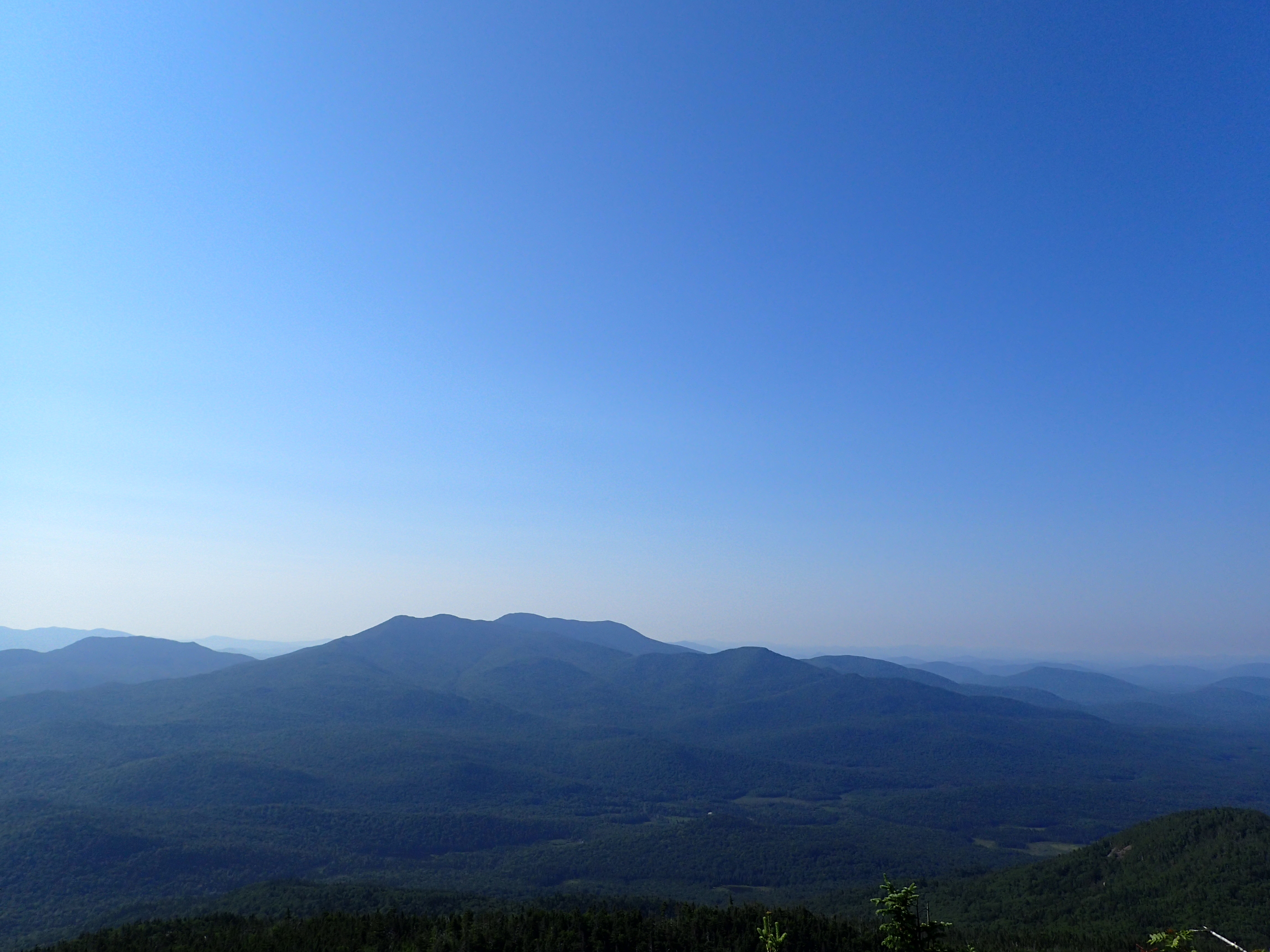 Mount Emmons holds the title of being the furthest west High Peak in the Adirondacks and by 1:20 pm I had made it across from Donaldson. It is another wooded summit, but it does offer a nice view looking back over Donaldson and Seward. It was also at this point that I realized I was nearly out of water and still had many miles left to go for the day. Between the heat and my pace I guess I had been drinking like it was an endless fountain. I knew this would slow me down but otherwise I still felt good.