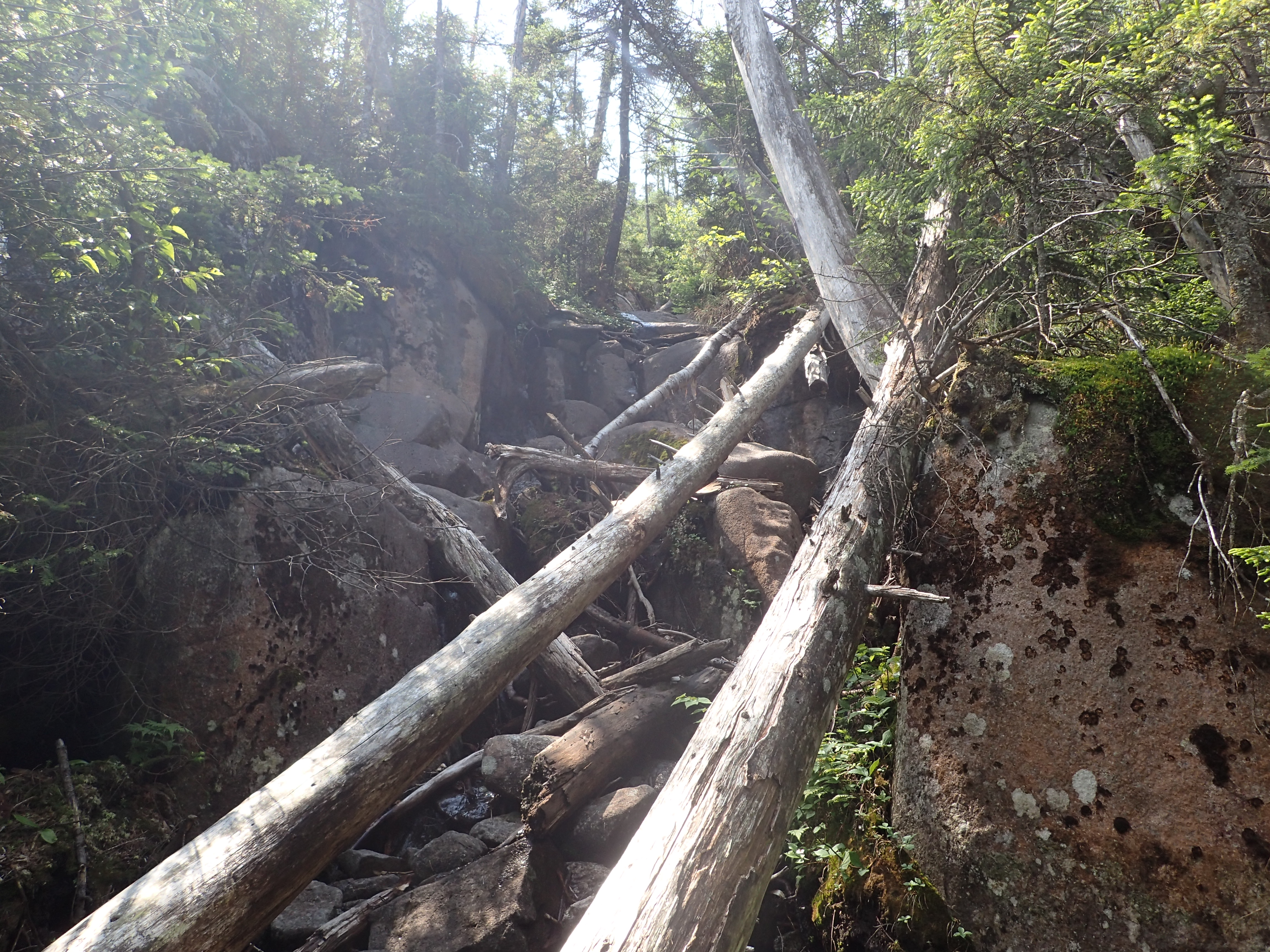 I knew I had a lot of hiking left to do so I didn’t linger long and made my way back down the way I had come. The decent went quickly but at one point following the slide I realized I had steered too far right missing a left turn that was marked by a small red ribbon on a tree. Once things became a bit overgrown I realized I had to turn around and back track. Although I did see some footprints so I may have stumbled upon an alternate or old trail up the slide. Either way I knew I didn’t have time to explore that this day so I rejoined the original path and made my way down. Once I got back to the road I made a left and jogged my way over to the Ward Brook herd path which wasn’t far down the road on the left marked by another small cairn. Unfortunately at the time I wasn’t thinking about this trip report and failed to snap a picture of the cairn and start of the herd path. I will be sure to avoid similar omissions in the future.