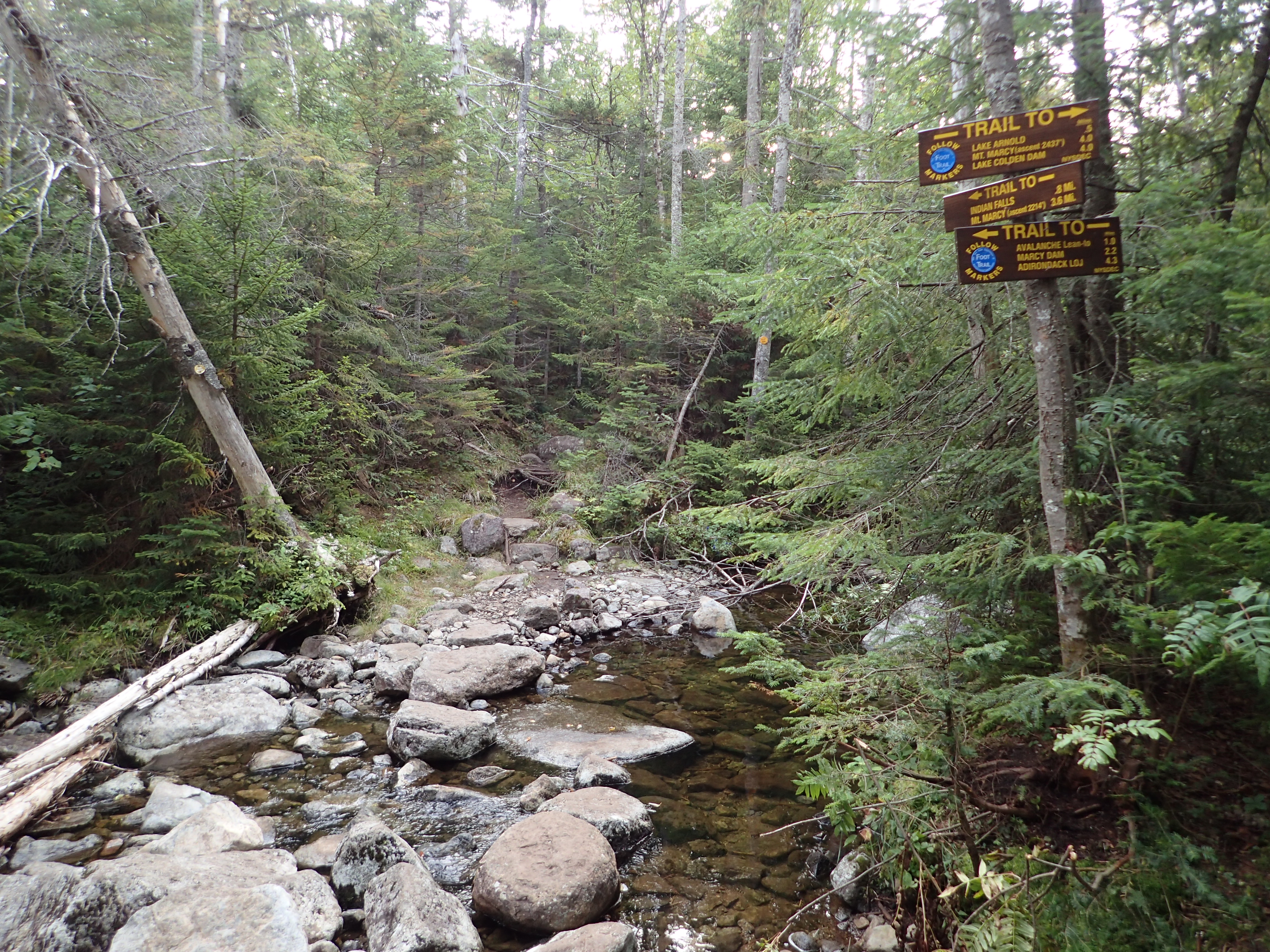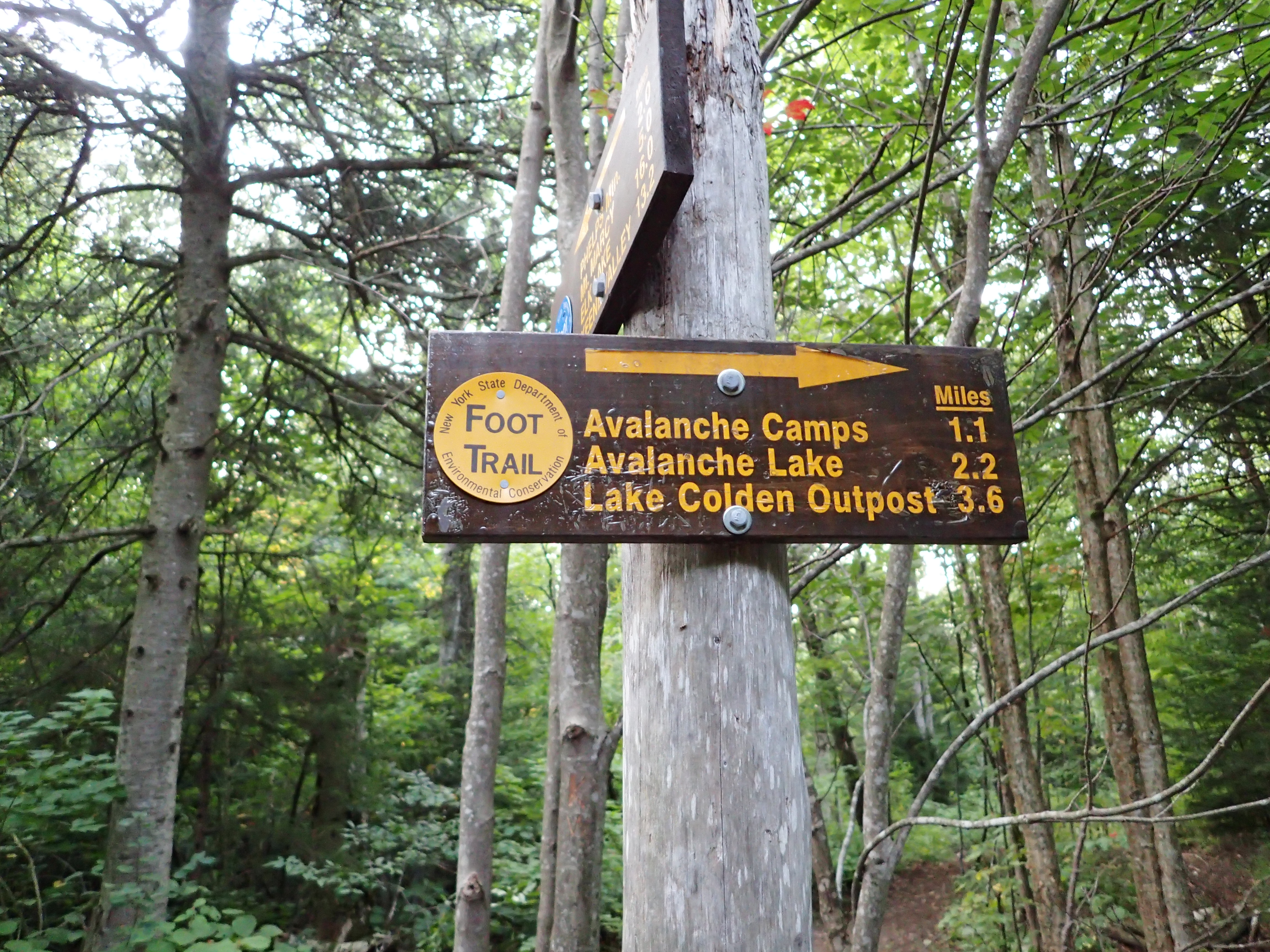At the first junction you will find quite a few signs marking different directions. The one you will want to follow is the sign leading towards Avalanche Lake. There is also another sign on a separate post leading the way.