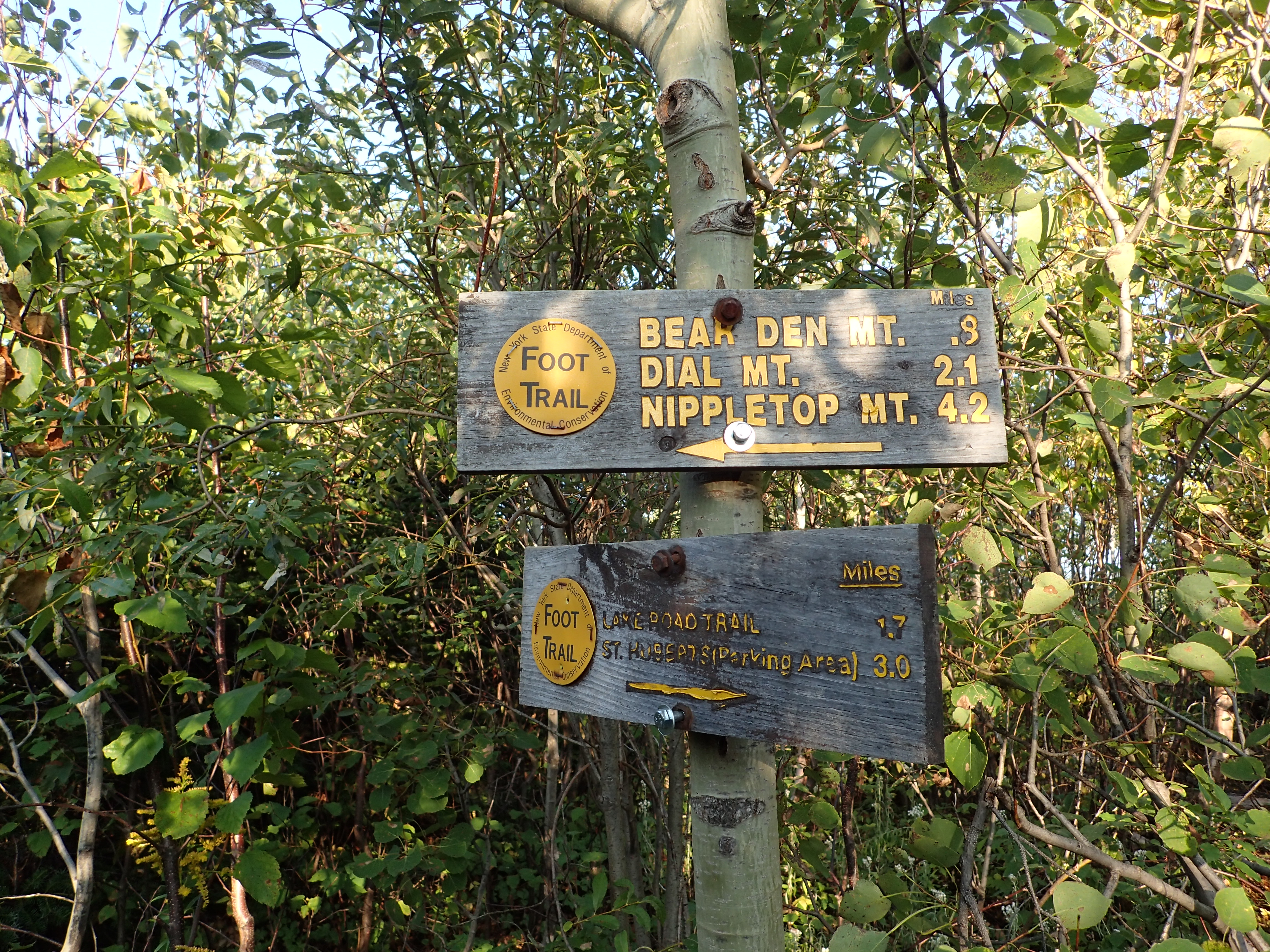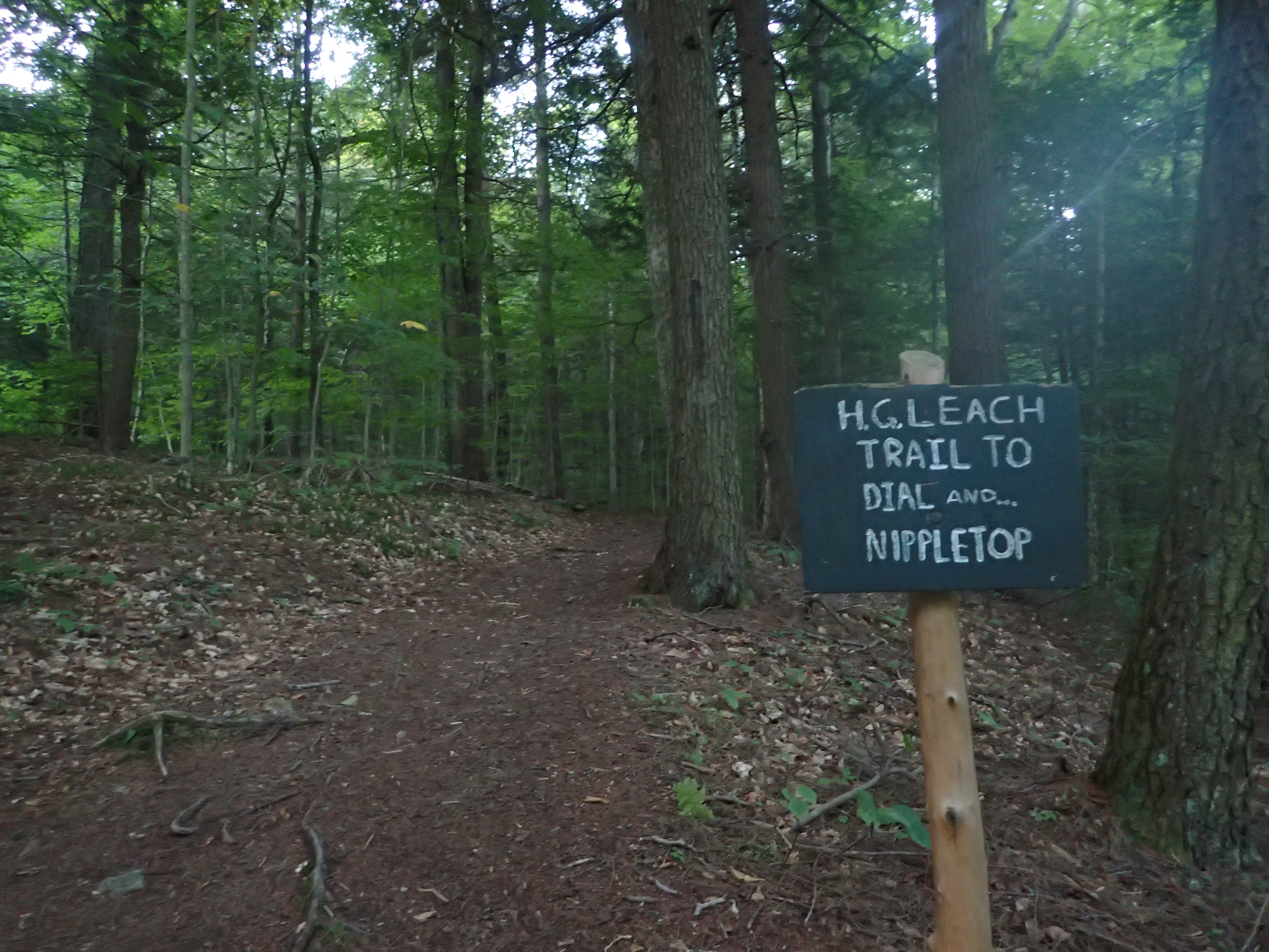 Bear Den Mountain is really pretty uneventful and besides passing by a few interesting rock outcroppings the only way you would realize you are at the summit is because of the next trail junction sign marking the distance from there to the summit of Dial mountain.