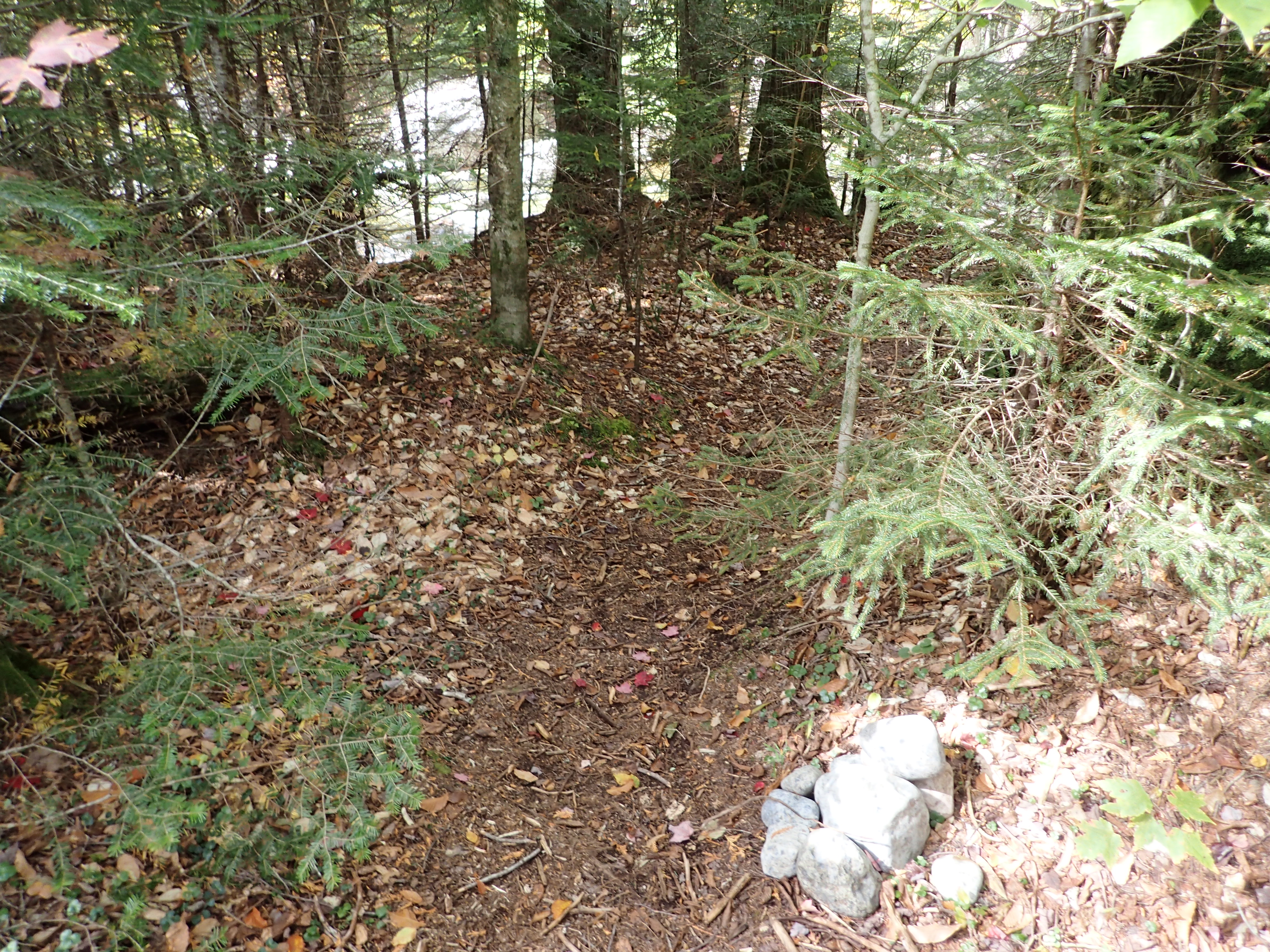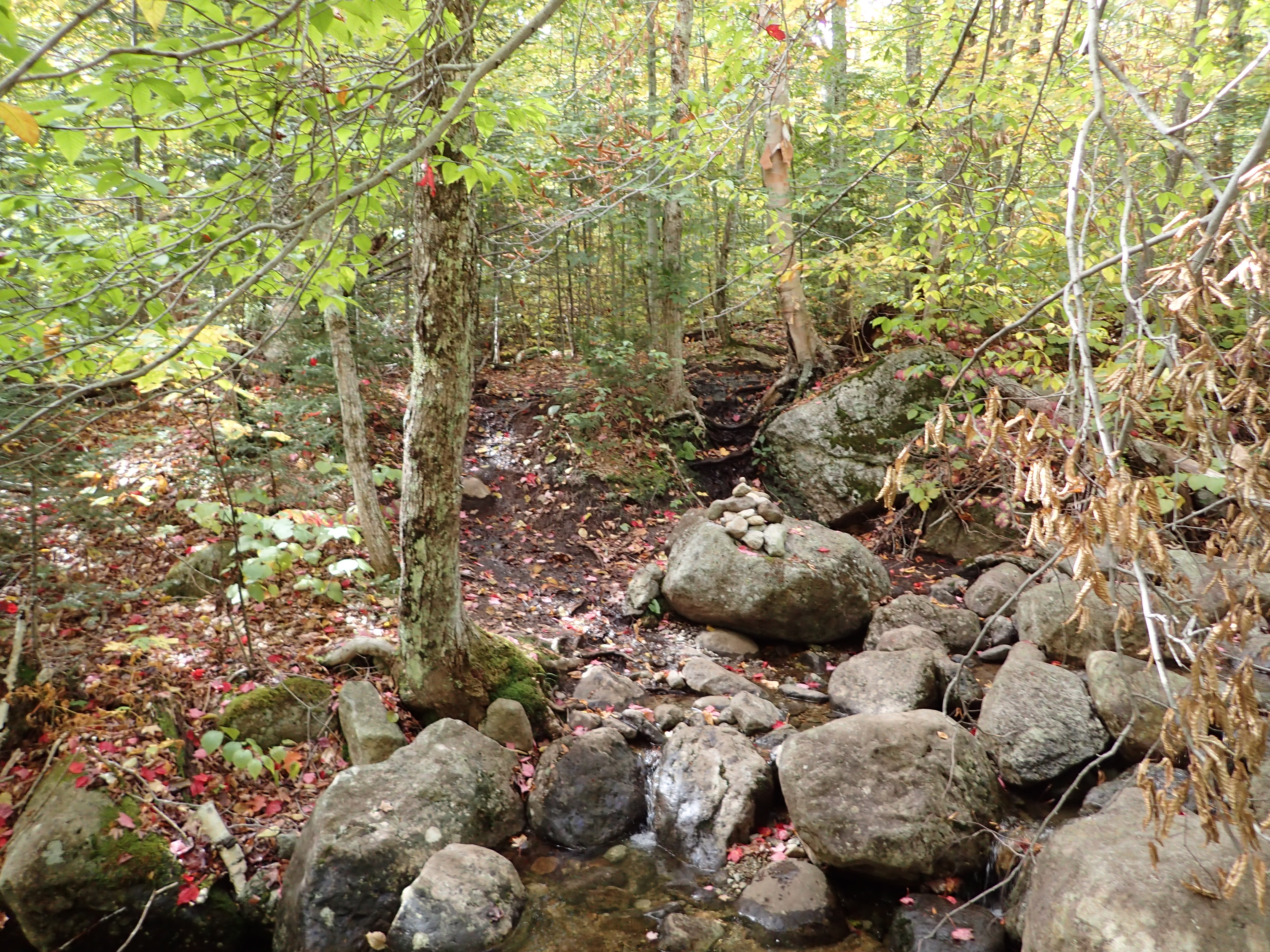 This section of the trail didn’t take me too long to tackle and before I knew it I was down at the Brook itself. Once I reached the Brook I did not see any obvious dry crossings so I decided to simply take off my shoes and go for an icy walk through the water. Luckily there wasn’t much water to cross but I prefer to have wet feet on purpose rather than by accident. A convenient cairn marks the location of the crossing as well as multiple cairns on the opposite bank.