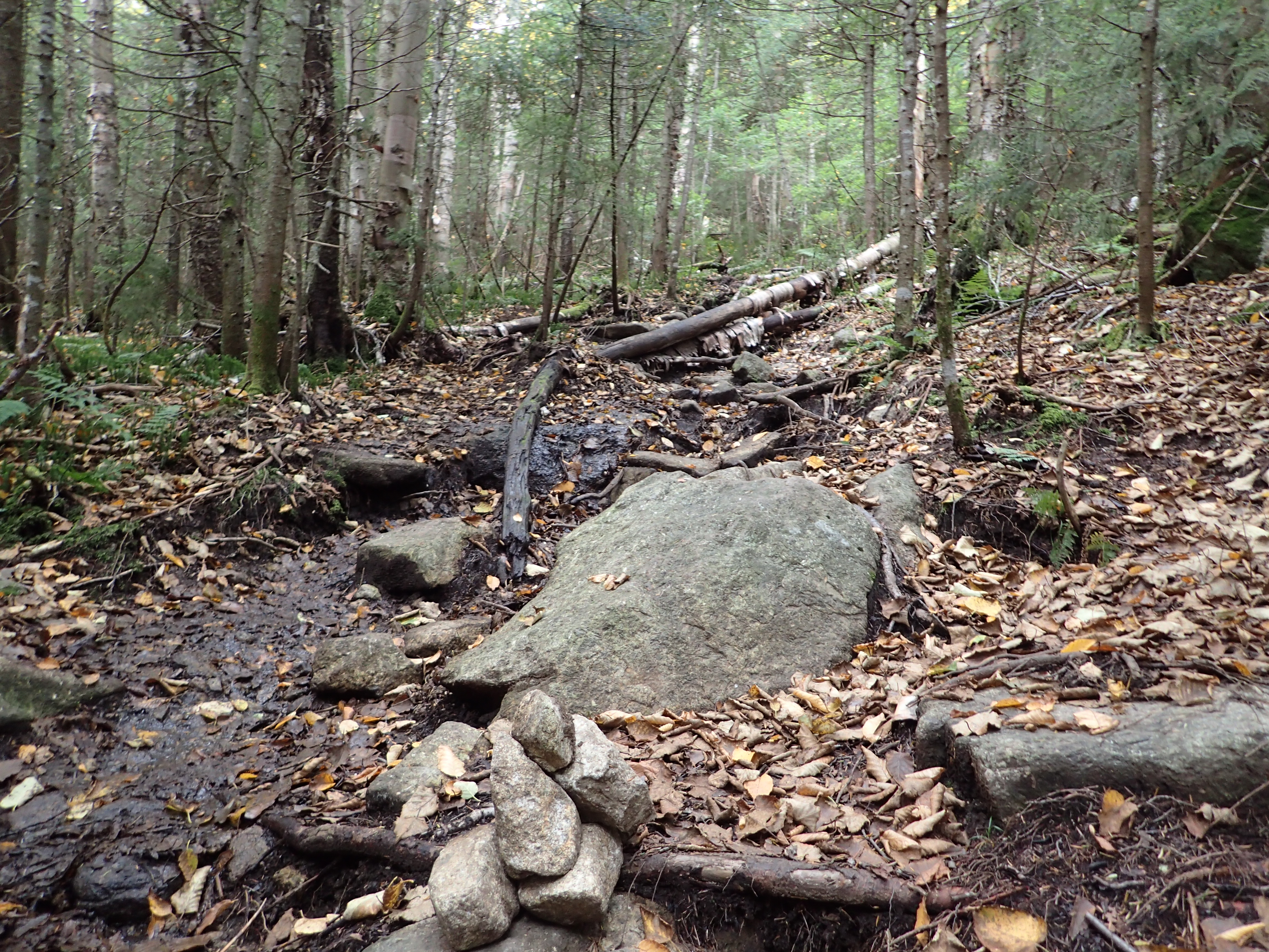 After crossing over Indian Pass Brook I came to another small brook crossing which conveniently had a large fallen tree as a bridge.