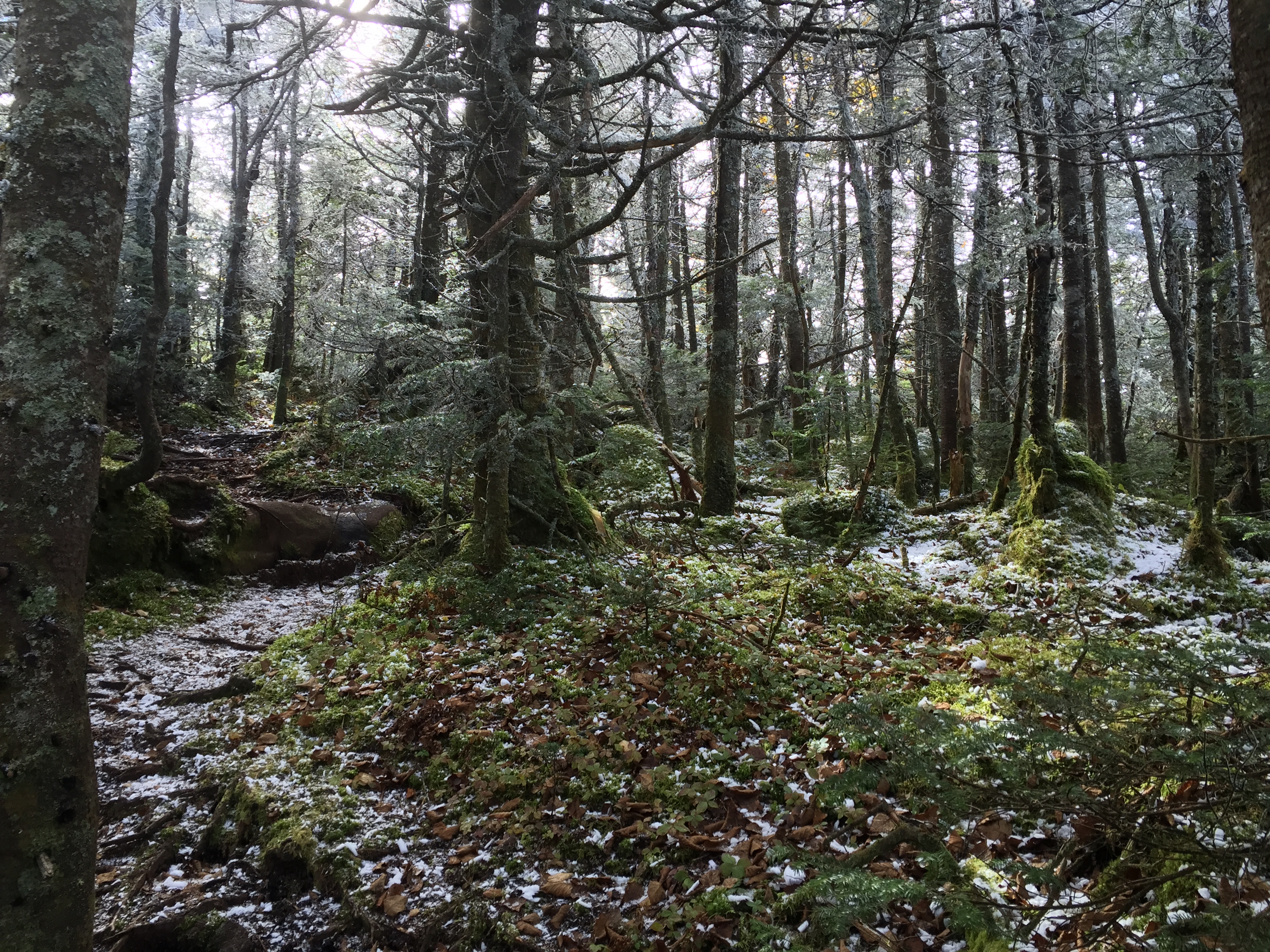 From this point it is 0.6 miles to the summit of Street and 0.3 miles to the summit of Nye. Since Street was the longer trail and taller summit I decided to start there. I kept a quick pace and made quick progress up the trail. As I got closer to the summit I was also greeted by some light ice/snow cover which had blown off the trees. Winter is coming to the High Peaks and seeing the landscape in transition at higher elevations so early into Fall is quite beautiful.
