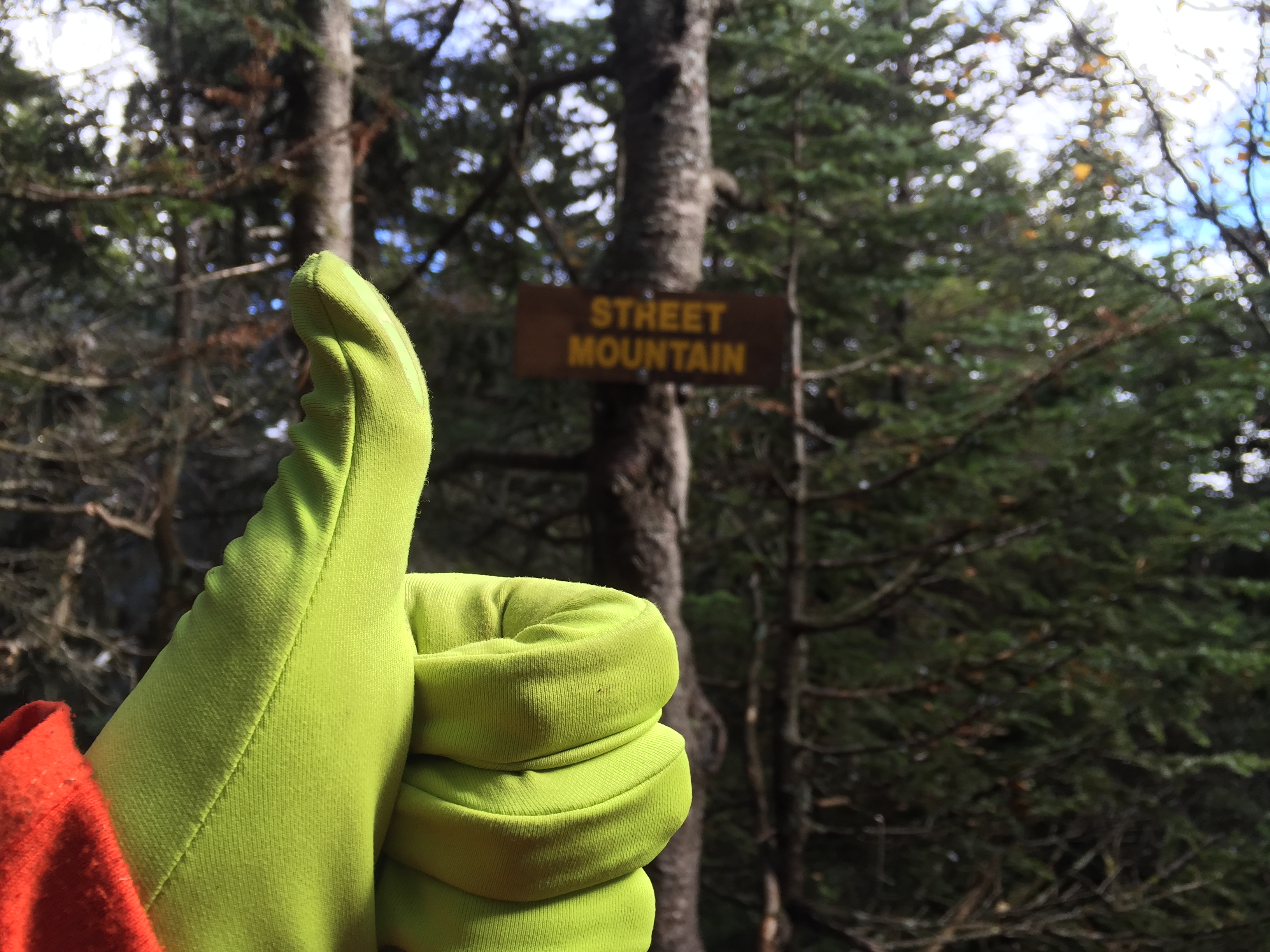 I made it on to the summit of Street at 2:33 which is marked by a sign. The summit itself is fully wooded but there are some obstructed views from small look outs surrounding the summit. Since it was a bit cold on top I only stayed long enough to take a photo before continuing on my way back down to Nye.