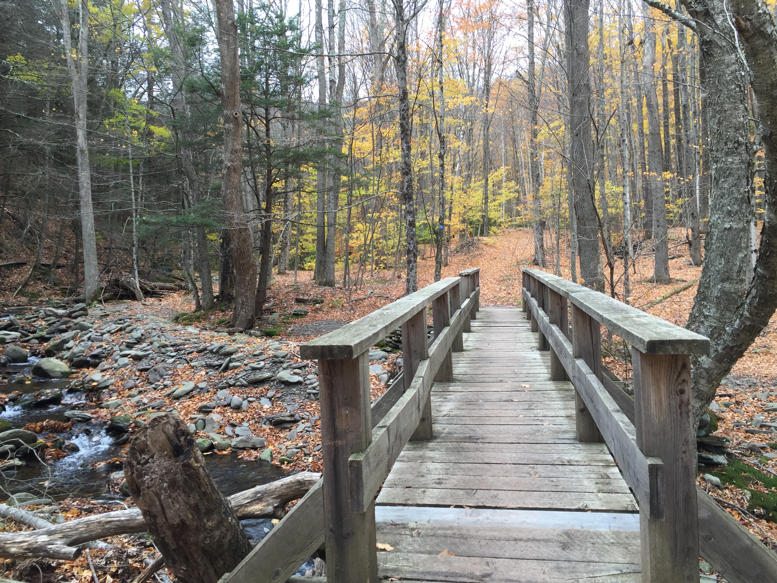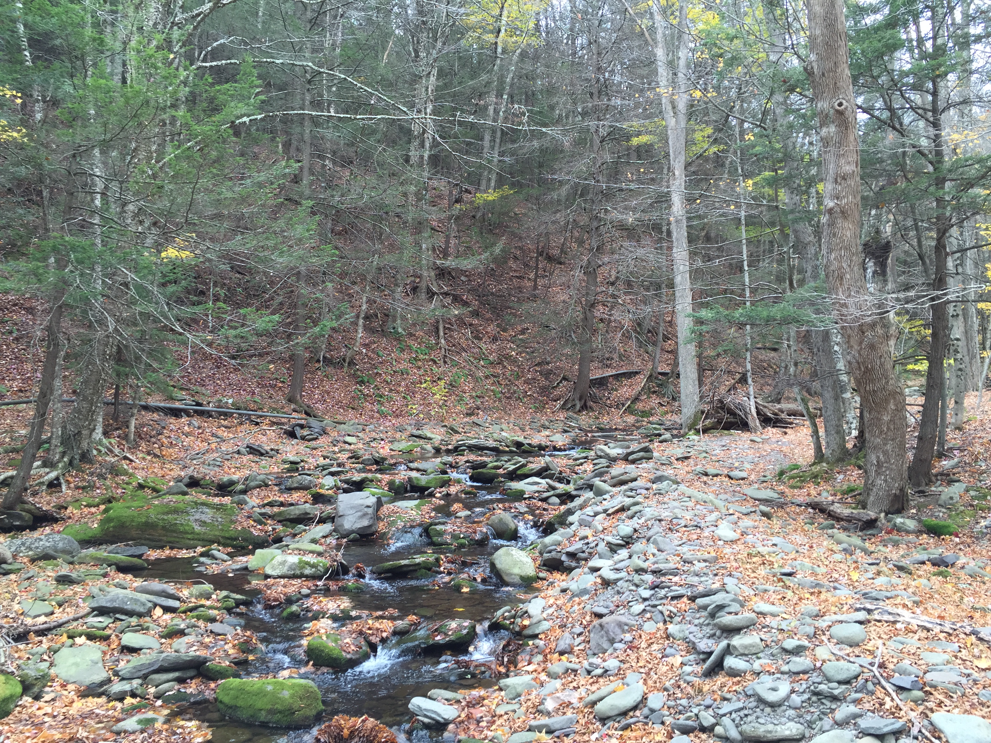 The hike starts off on easy terrain through a wooded low land before crossing the brook and beginning to climb upwards towards the summit. The brook is quite nice and offers a nice place to stop and enjoy the sound of the water before or after your hike.