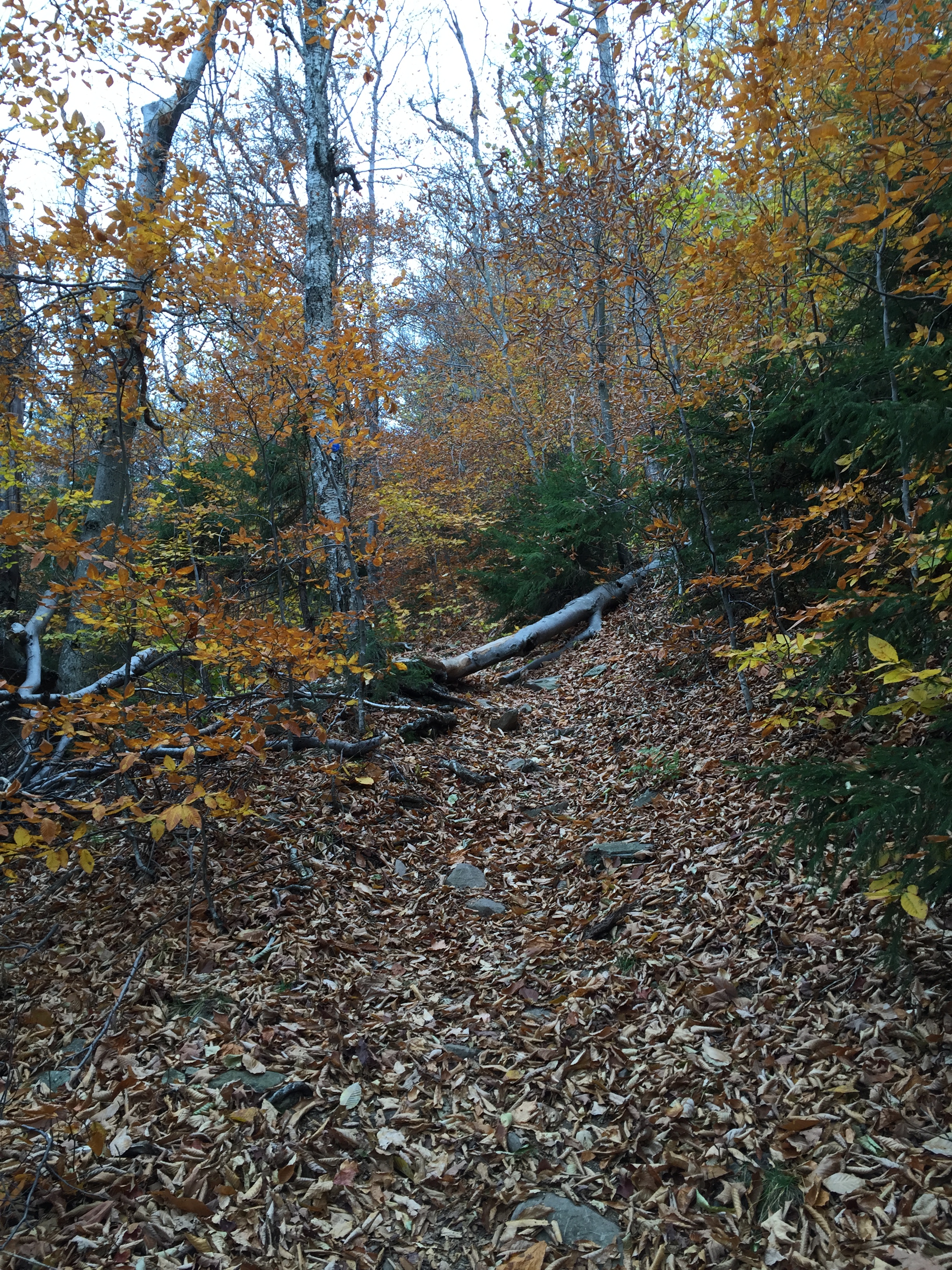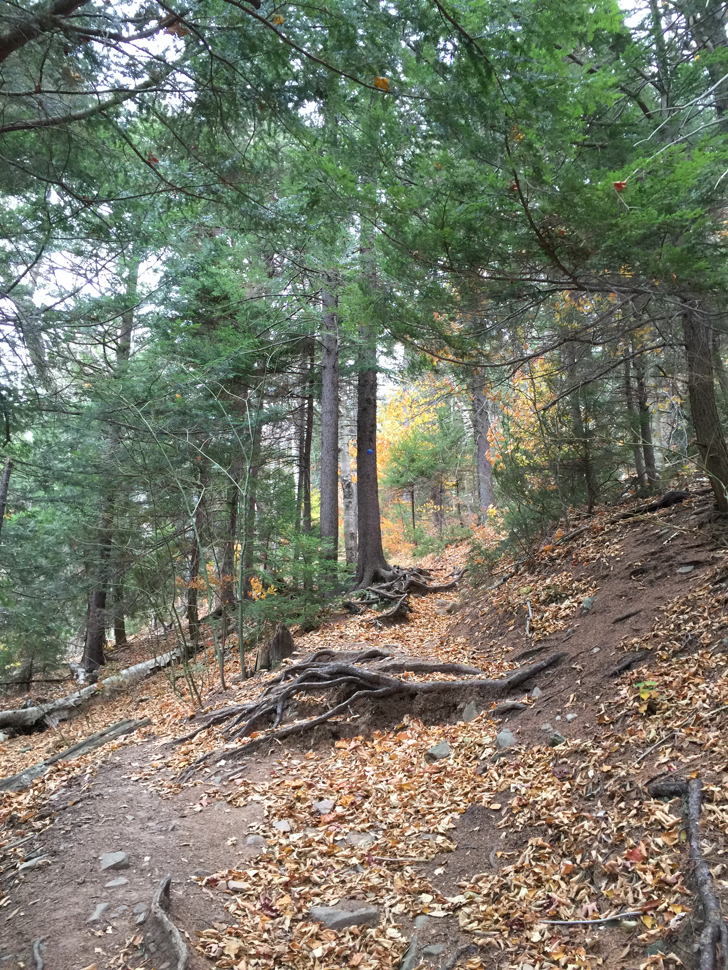 The fall colors were in full force near the bottom of the trail and the trail was blanketed with leaves which both made the trail quite beautiful and a bit of a pain to hike as there were countless uneven rocks hidden by the leaves. However, it didn’t pose much of a problem so we were still able to make good time.