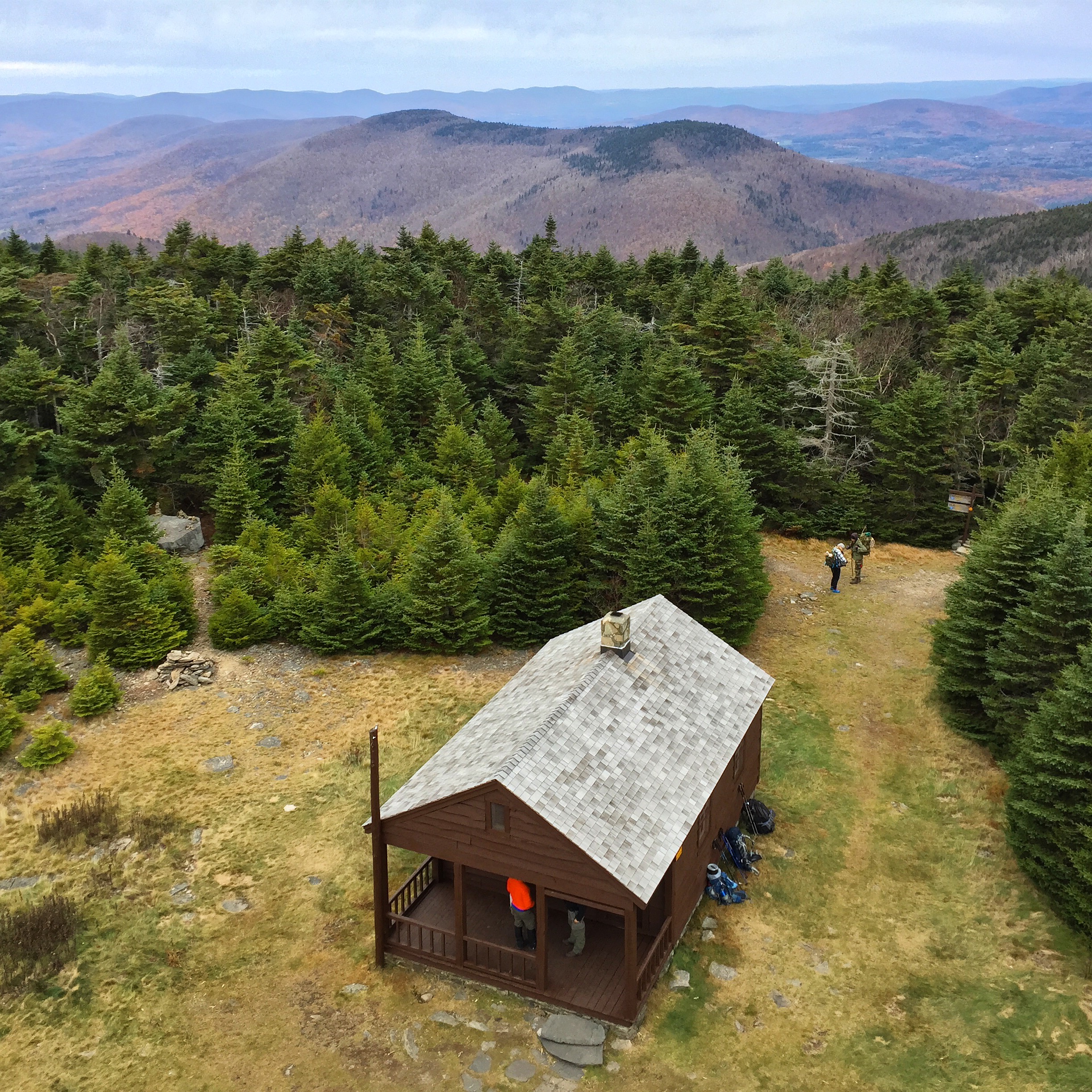 After a quick jaunt up the yellow trail we came out onto the ridge directly next to the fire tower and cabin. The summit of Hunter is wooded but the fire tower does offer some pretty great views. The top of the fire tower is locked so you can’t enter the box but you can still get great views from the stairs.
