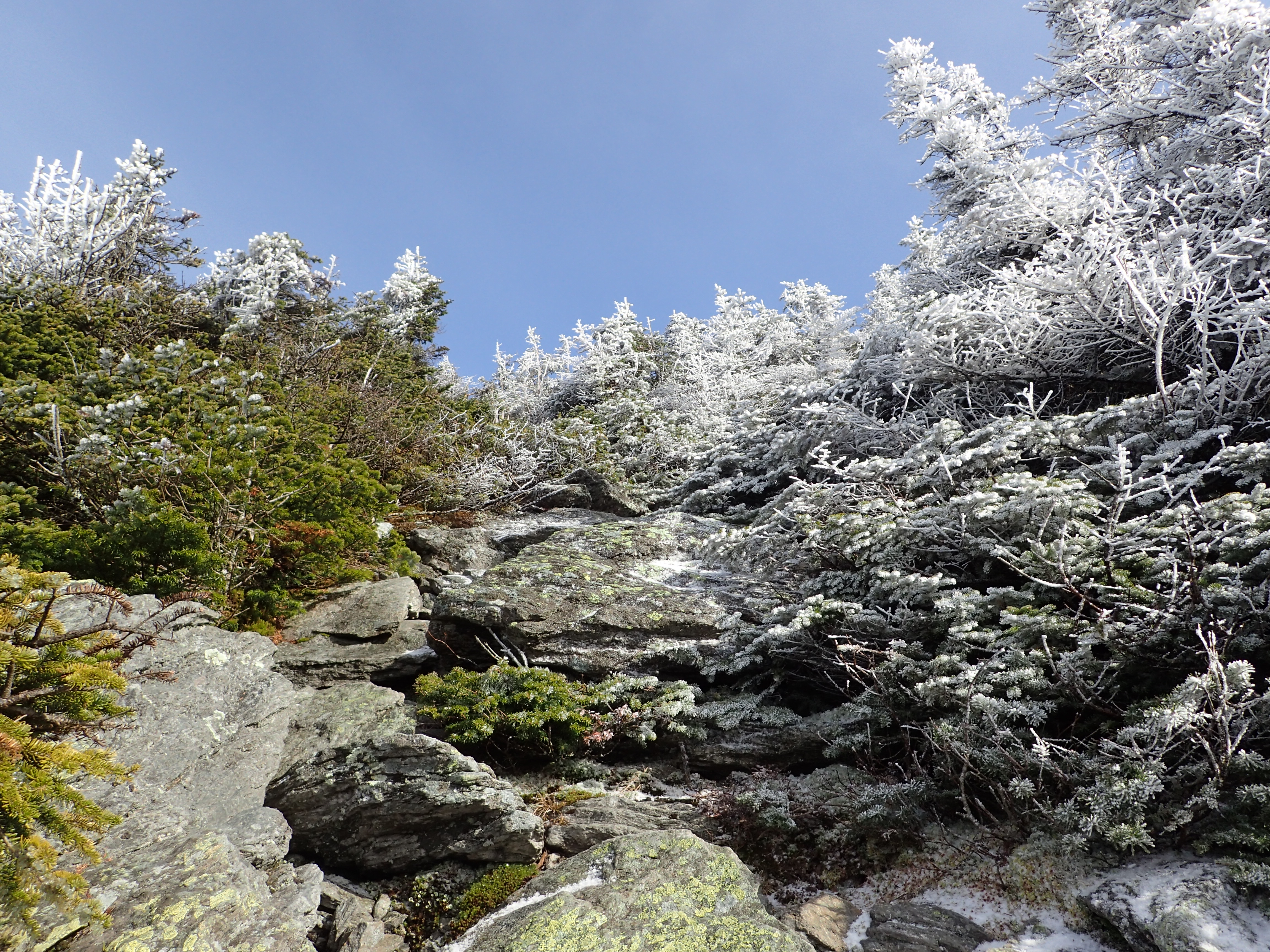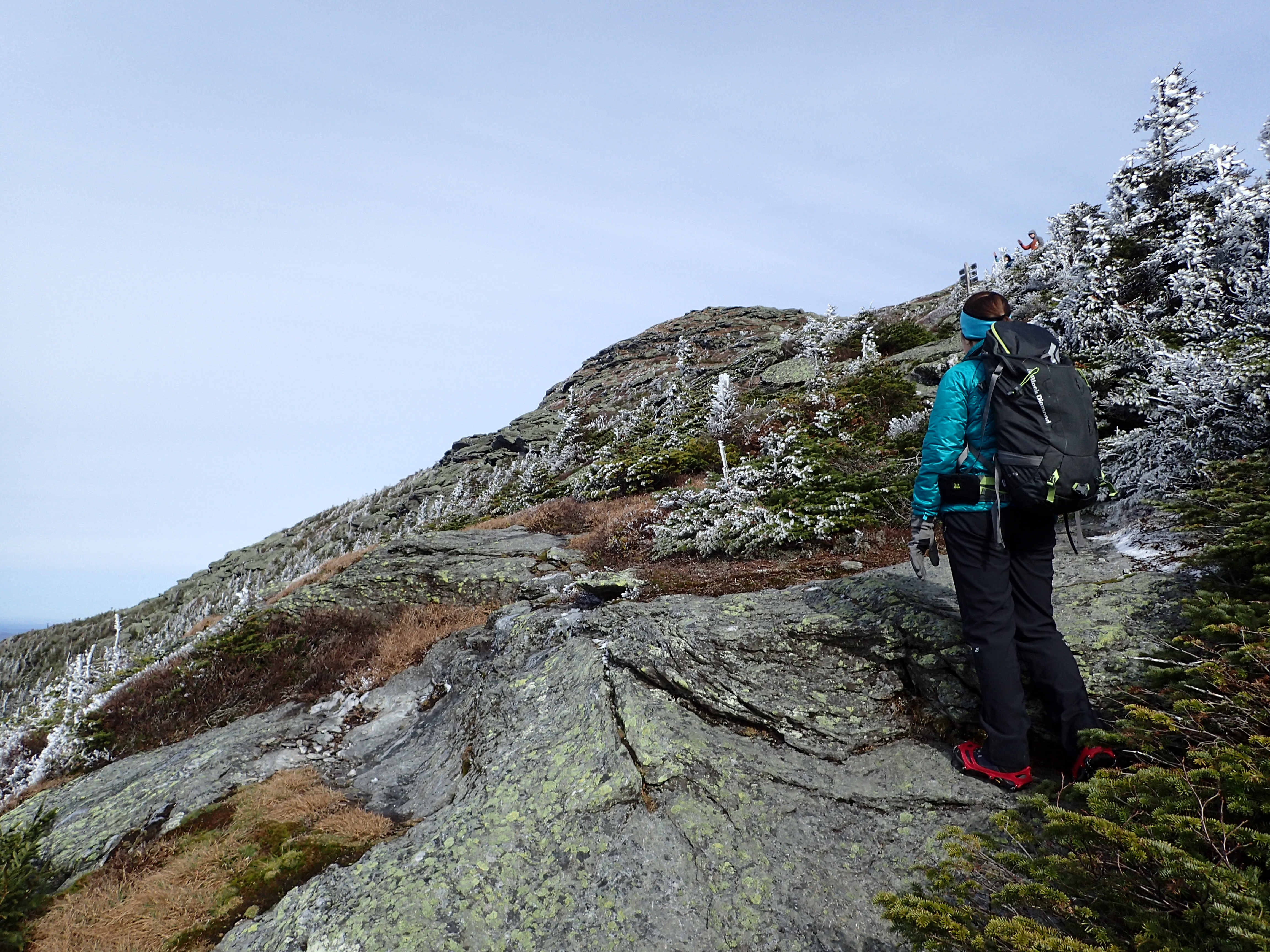 The Laura Cowles Trail follows a nice path along the side of a brook before eventually becoming steeper and moving away from the brook proper. At this point there was some water along the trail but it was pretty minimal and we only ran into a couple of places that were icy. However, since ice was expected we had our micro spikes ready to go so we put those on just to make things easier, although plenty of people climbed Mansfield that day without them. Going forward I would expect they would become pretty mandatory as winter starts to creep in.