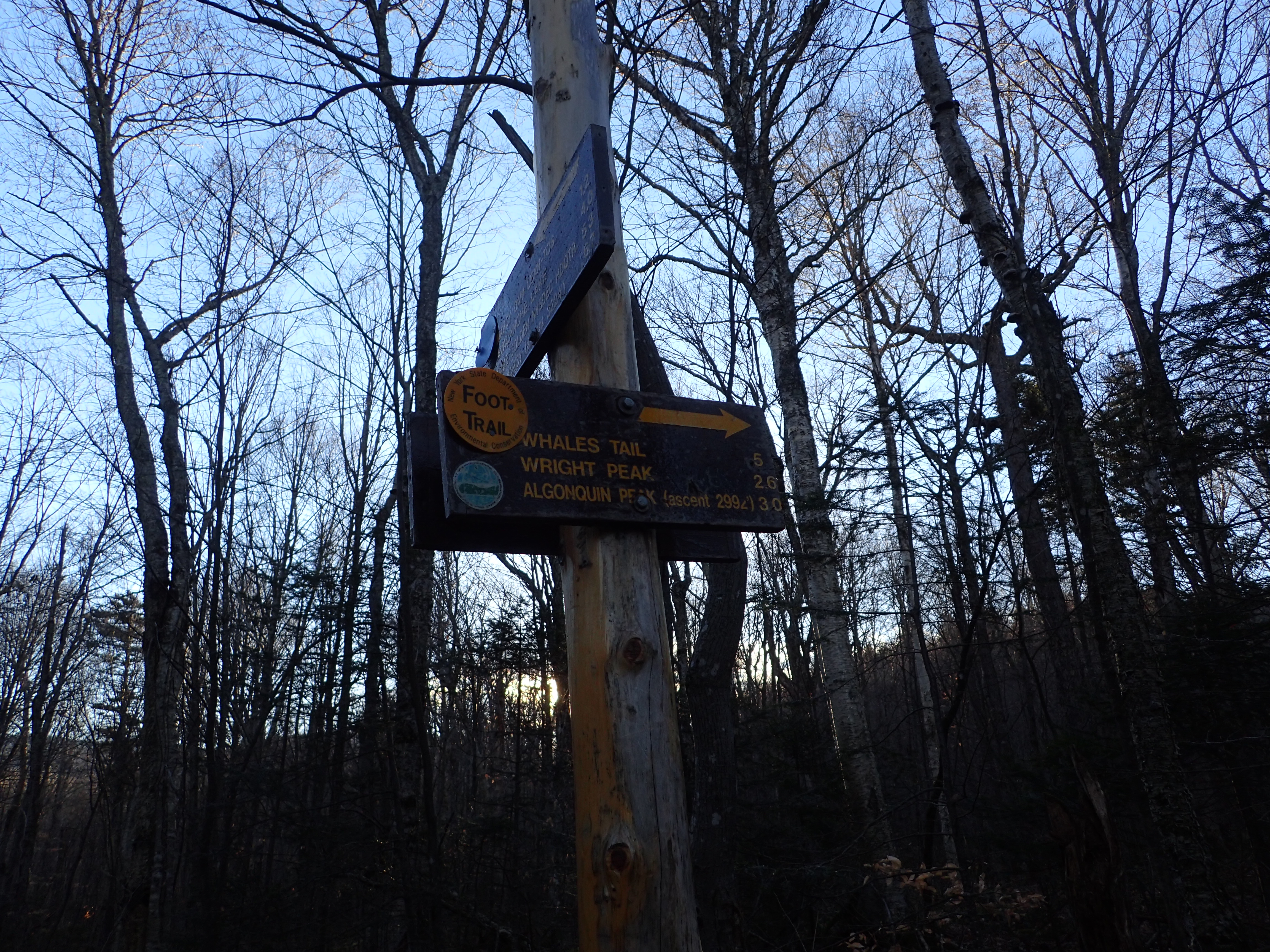 After about a mile  of hiking I came to the first trail junction at 8:15am. From here I stayed to the right and kept following the trail leading towards Algonquin and the Whales Tail.
