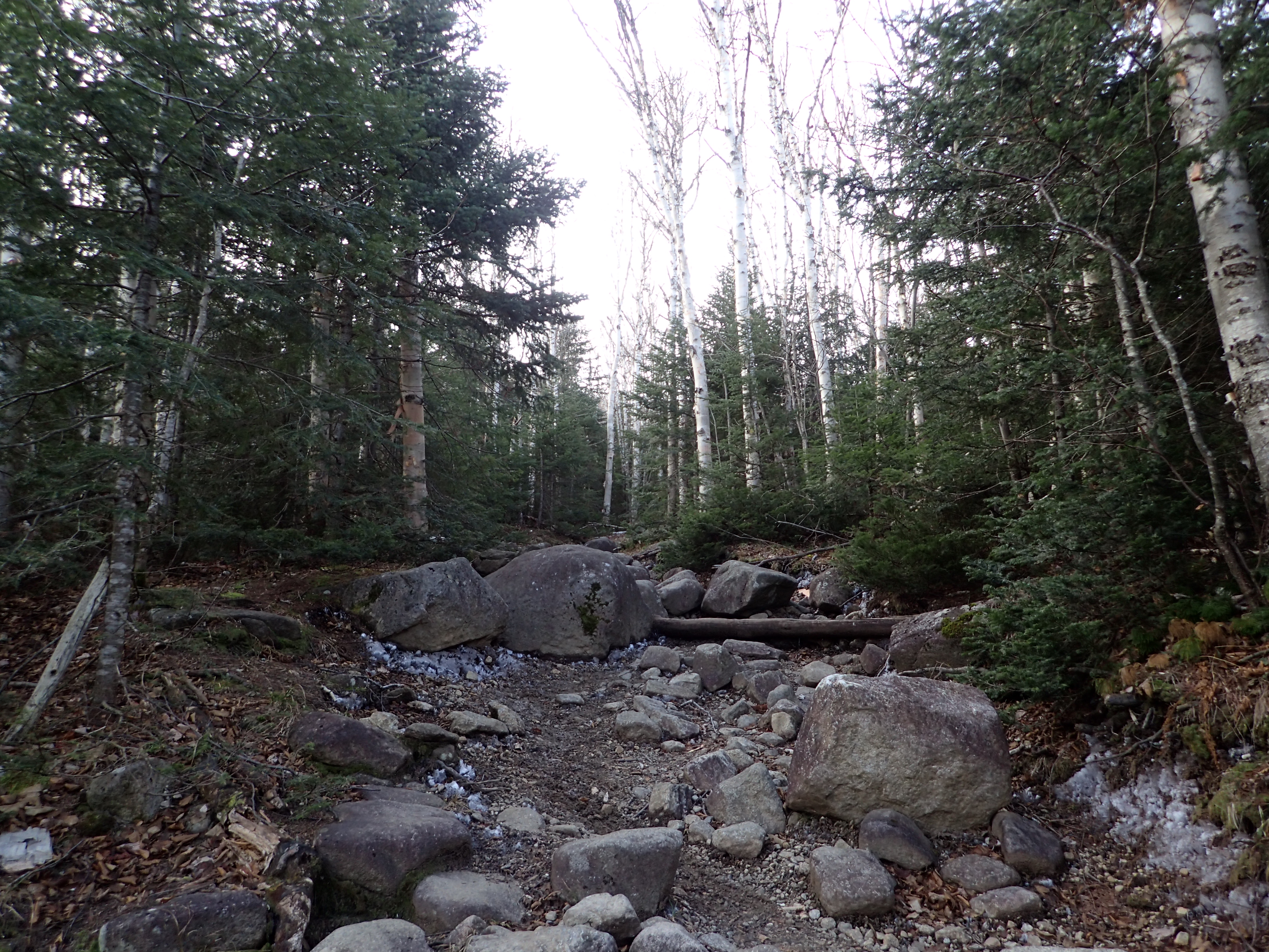 After passing the two brooks the trail also got substantially steeper and instead of just small rocks there were also much larger boulders that had to be navigated. Despite the increased steepness I was still able to make pretty good time.