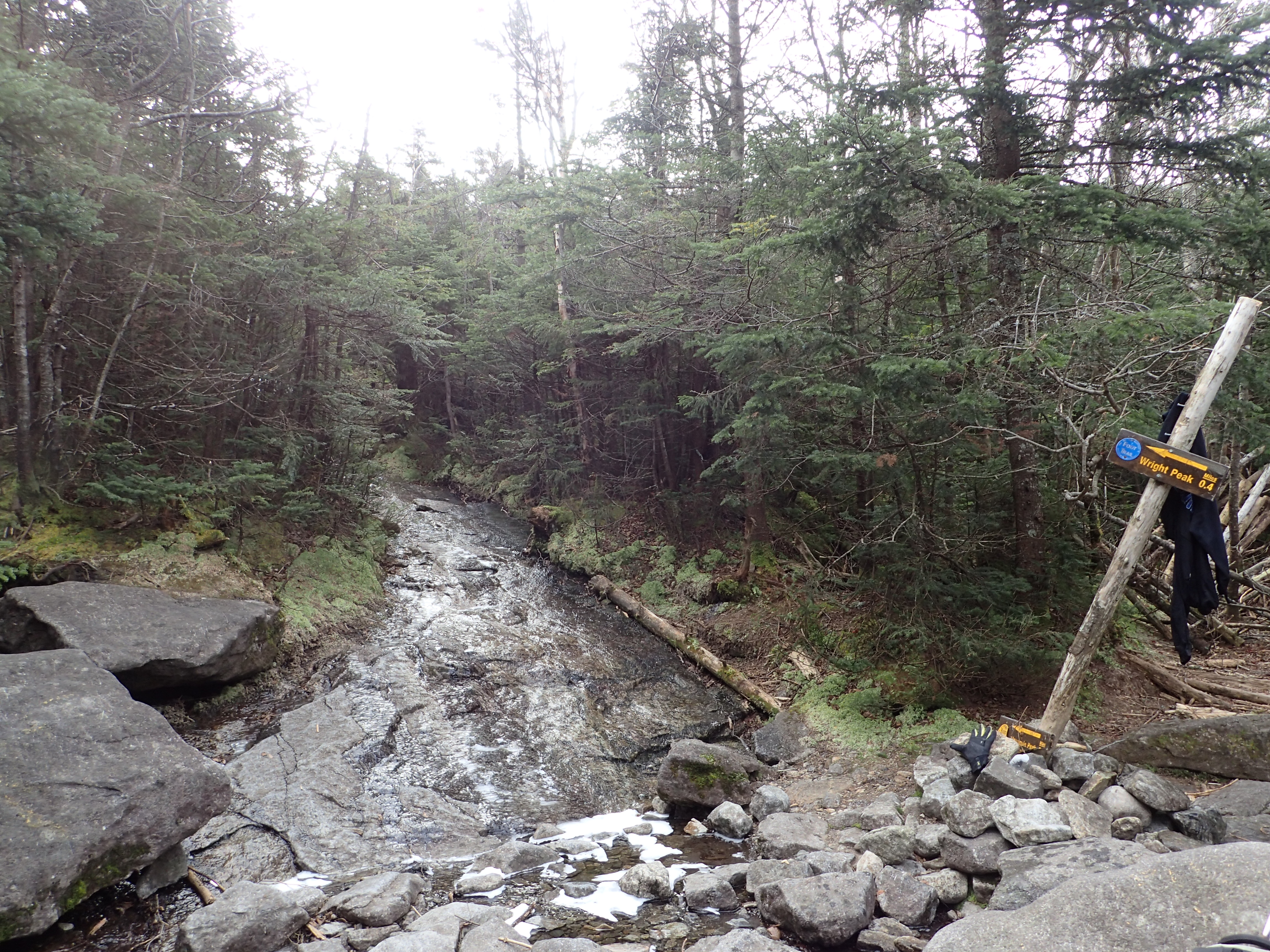 After passing this steep section it was only a few more minutes of hiking before I reached the trail junction for Wright Peak to the left at 9:50 am. I decided to get Algonquin and Iroquois out of the way first and save Wright for desert. This turned out to be a really great choice. The trail junction sign was pretty destroyed but still kind of useful I suppose. The trail for Algonquin continues straight while the trail for Wright is off to the left.