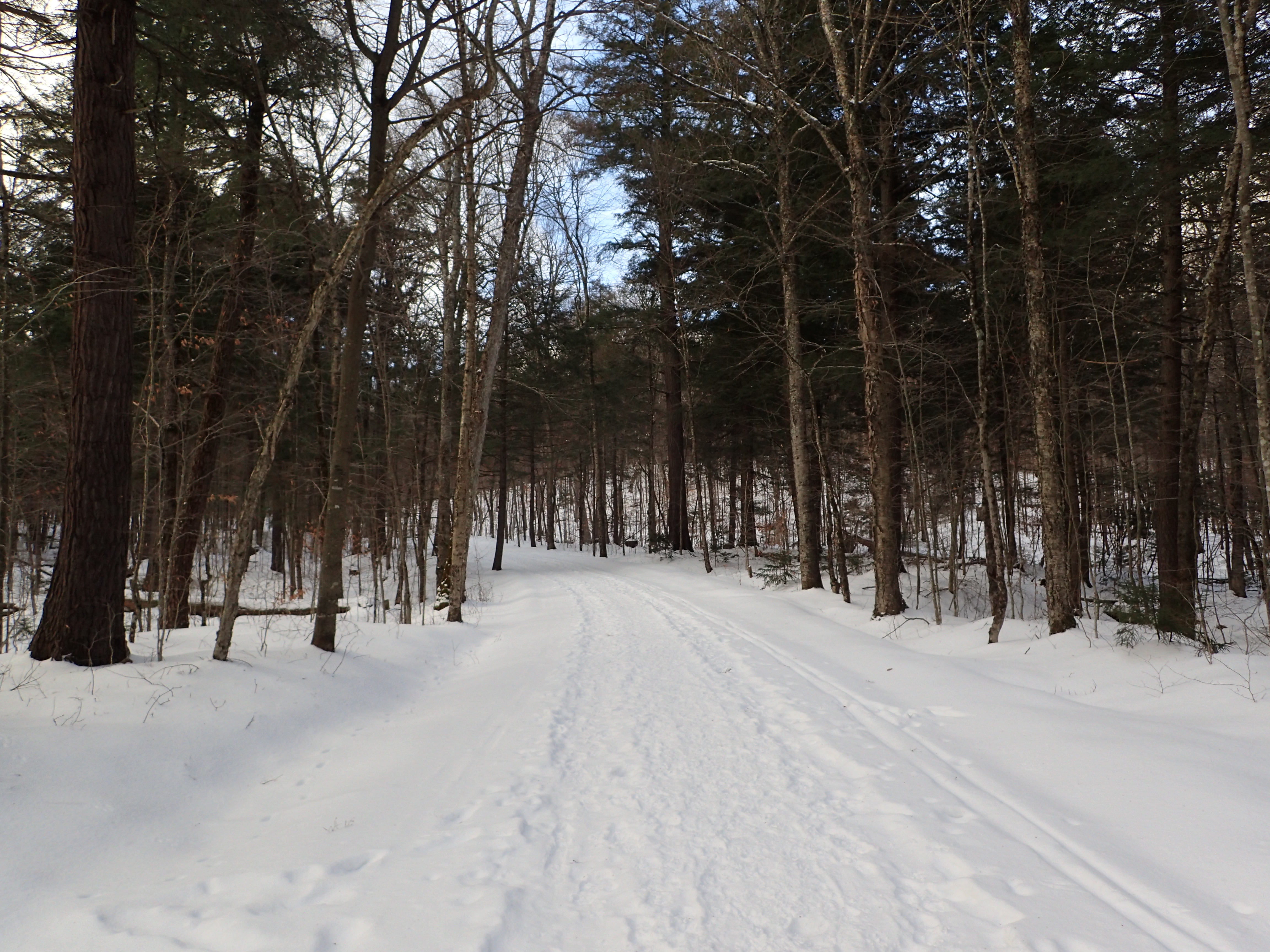 After a short 0.70 mile section of trail we arrived at the next trail junction marking the way back to Lake Rd and ultimately the parking lot in St Huberts.