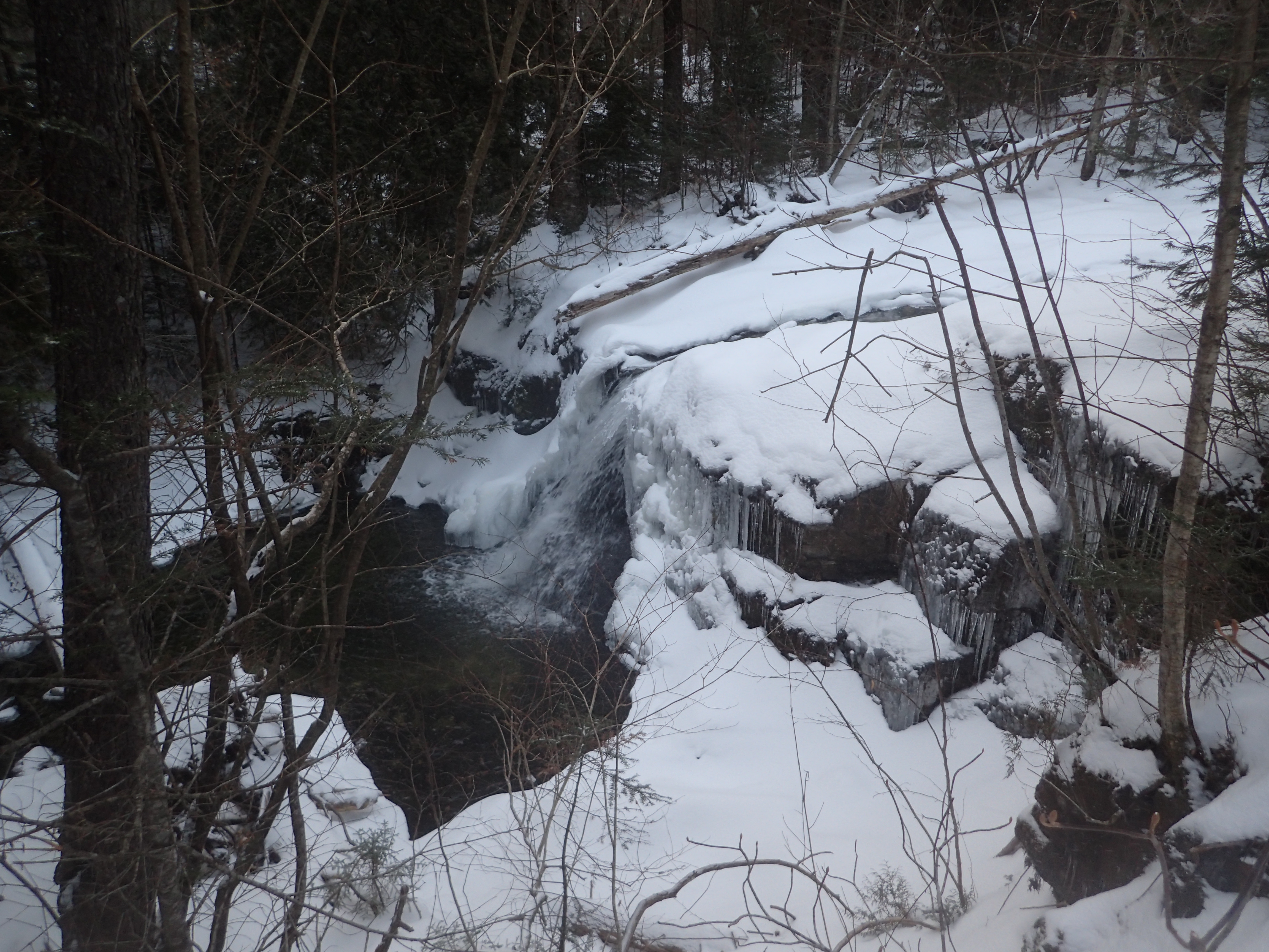 Shortly after passing this sign we came to a small waterfall along the Gill Brook. It was only partially frozen and offered a nice place to stop for a snack before working our way down the final few miles down Lake Rd.