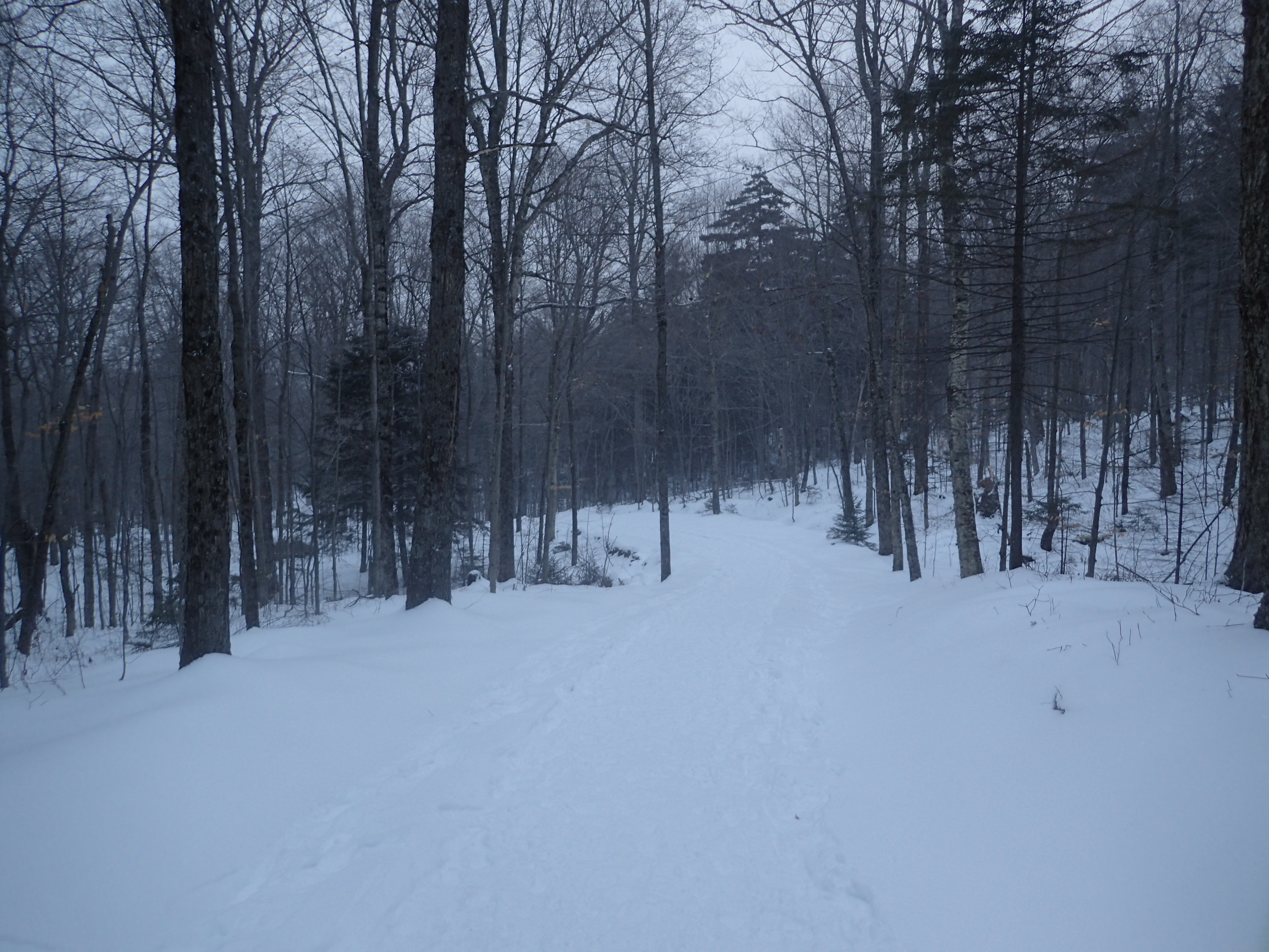 We decided to do the hike in a clockwise direction which meant beginning with a short section on the road before turning onto the H.G. Leach Trail which traverses the Noonmark Shoulder and Bear Den Mountain before reaching Dial and Nippletop beyond. I prefer doing the hike this way as you get the hardest part done first and then after descending Elk Pass its just an easy stroll back down the road. Lake Rd was covered in snow and would have made for nice skiing.
