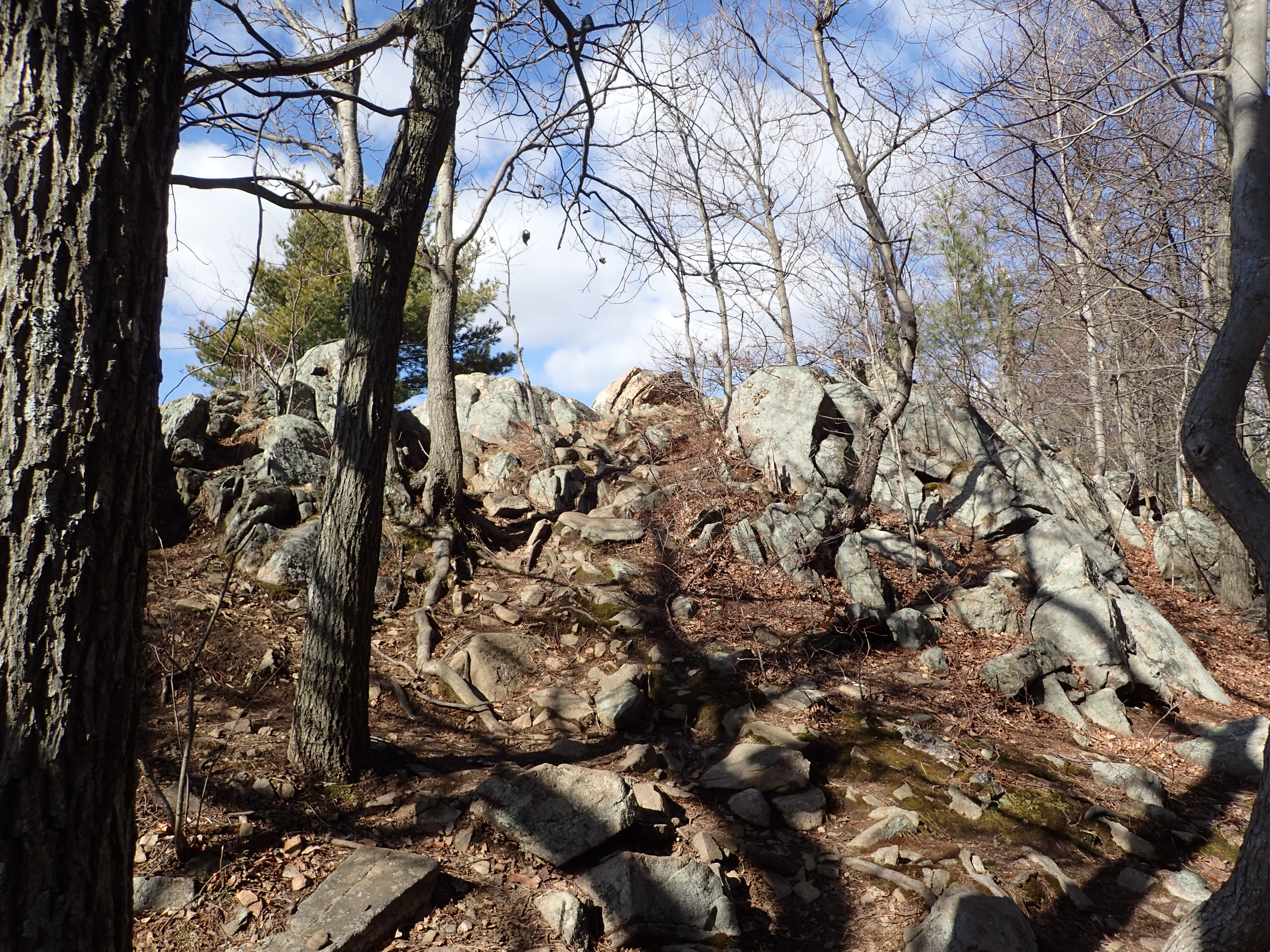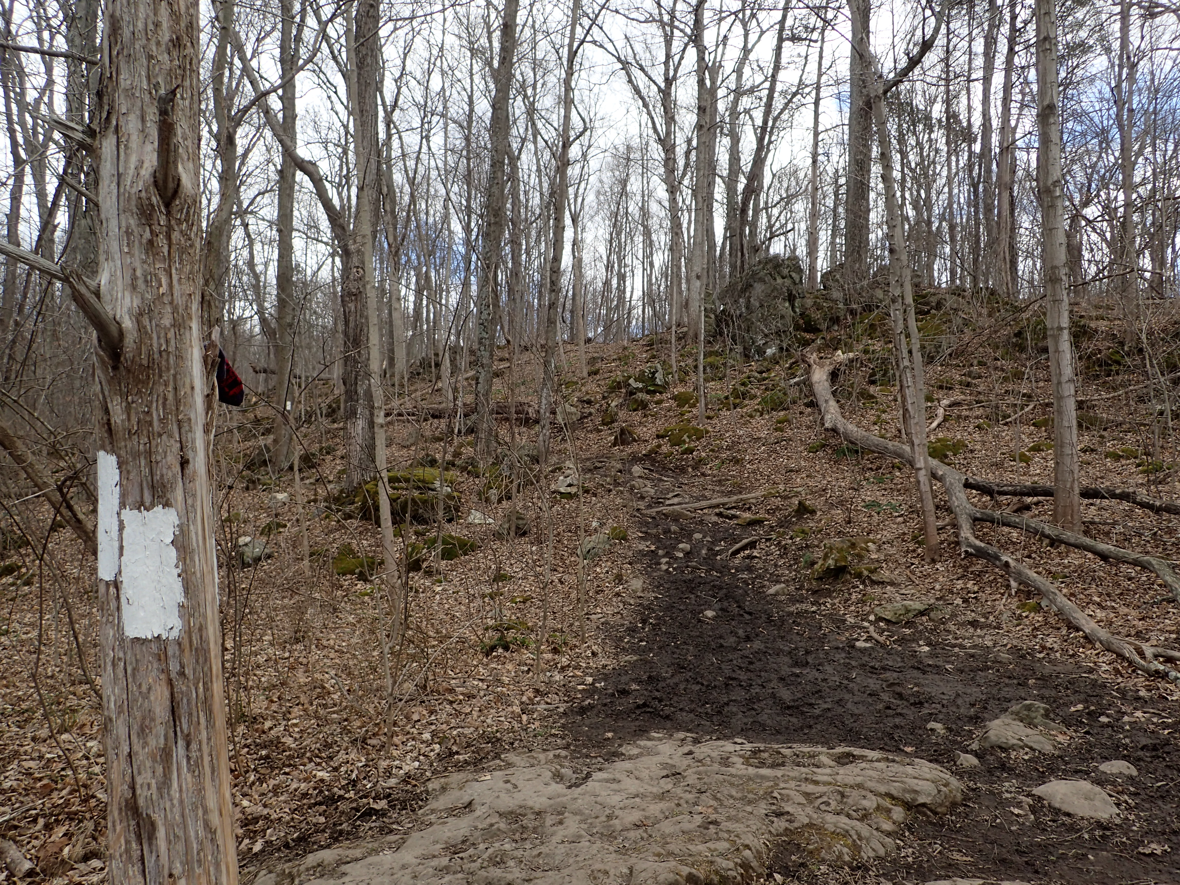 The base of the hillside was littered with talus which needed to be navigated in addition to shot sections of rocks that had been stacked like a stairway. The trail is well marked by blazes on the trees and I did not find it difficult to find the correct path.