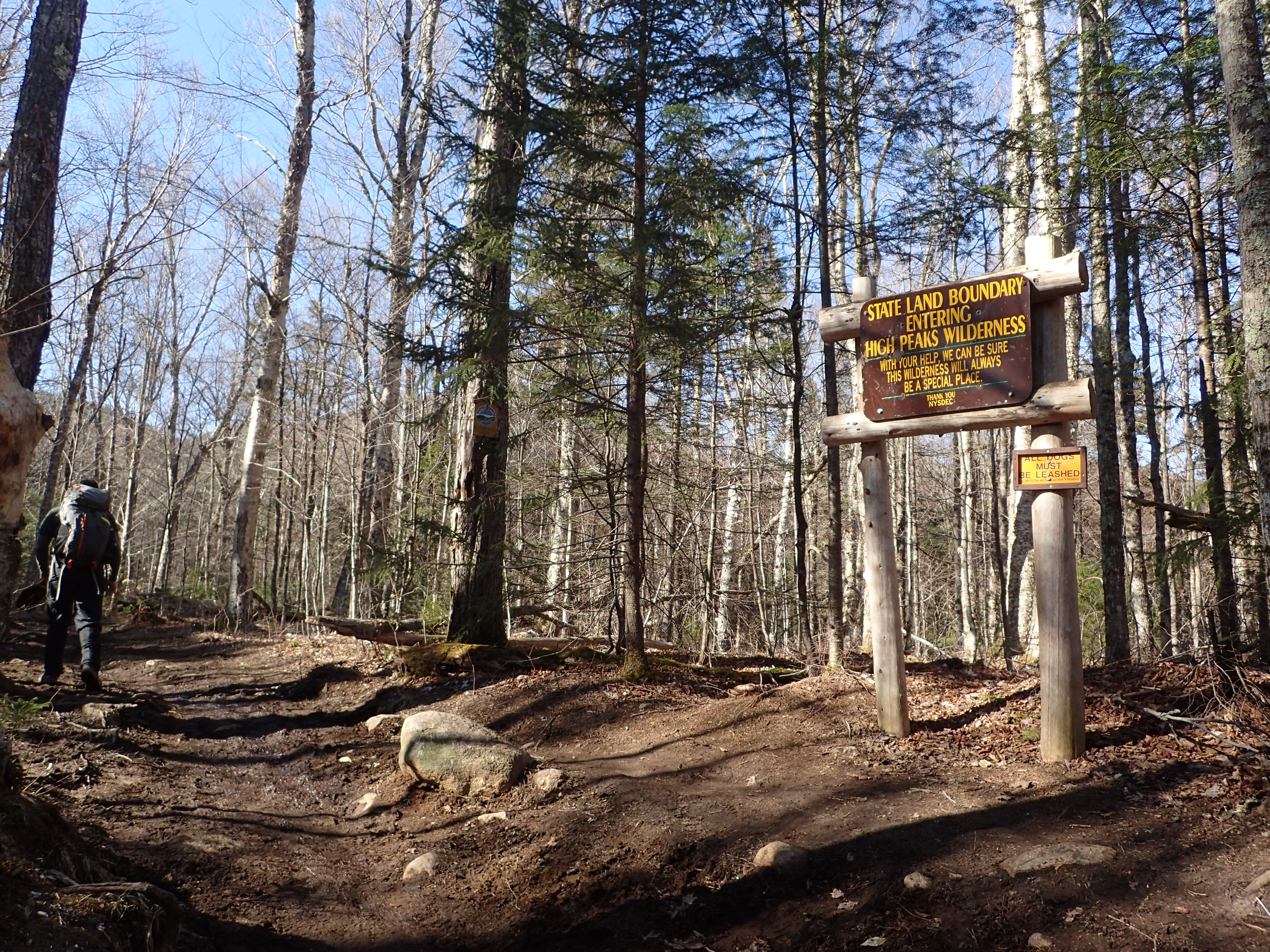 This section of trail leading to Marcy Dam is pretty dull in my opinion but it may just be because I have hiked it way too many times but it is easy to follow and fairly flat so it is easy to make good time. Before too long we reached the sign marking the border with the High Peaks Wilderness area.
