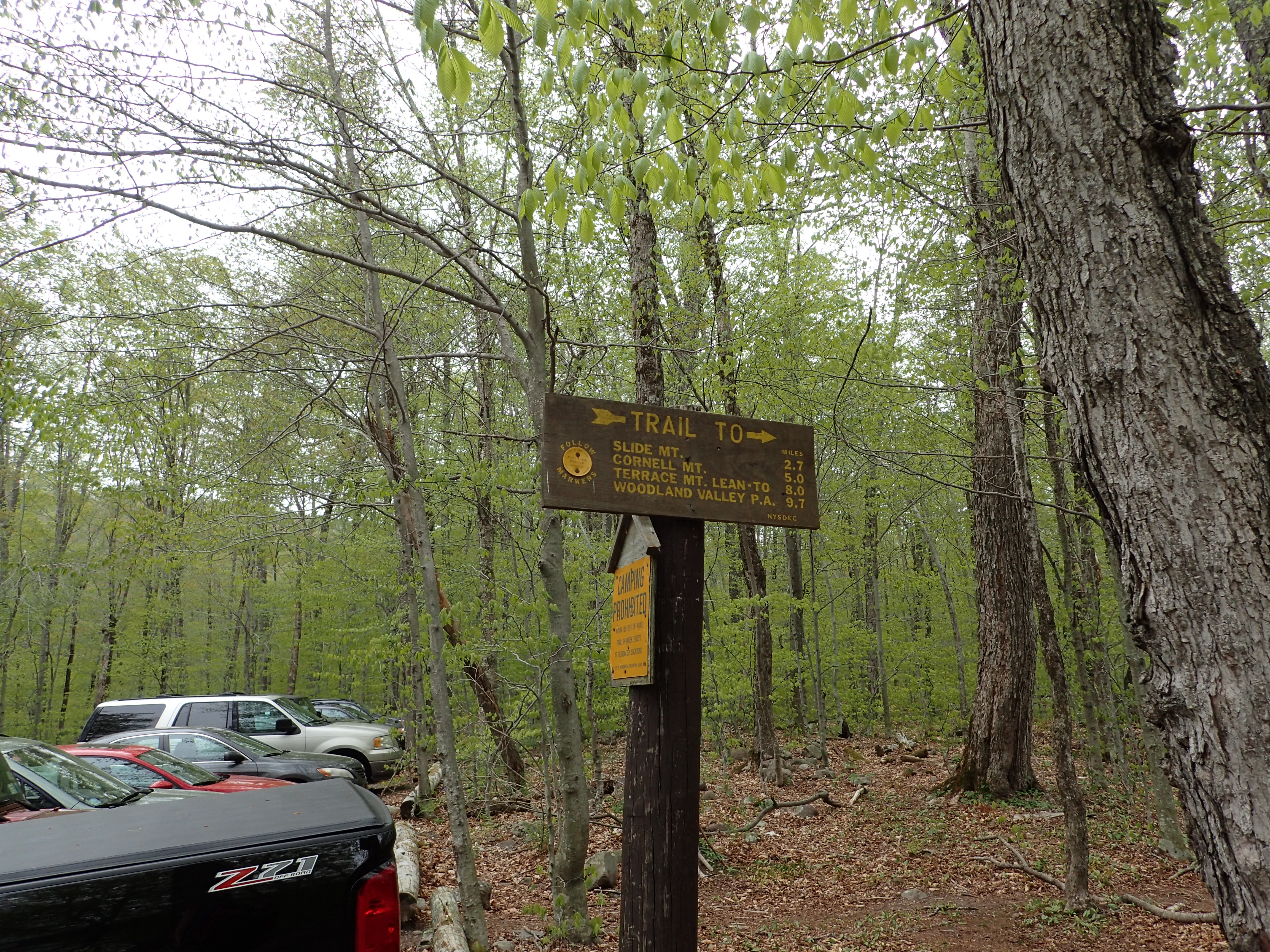We arrived at the Slide Mountain trailhead at about 11:45 am and it was pretty much full when we arrived but there were a few spots available so we were still in good shape. I am sure if it were a nicer day we may have had a problem finding a spot.