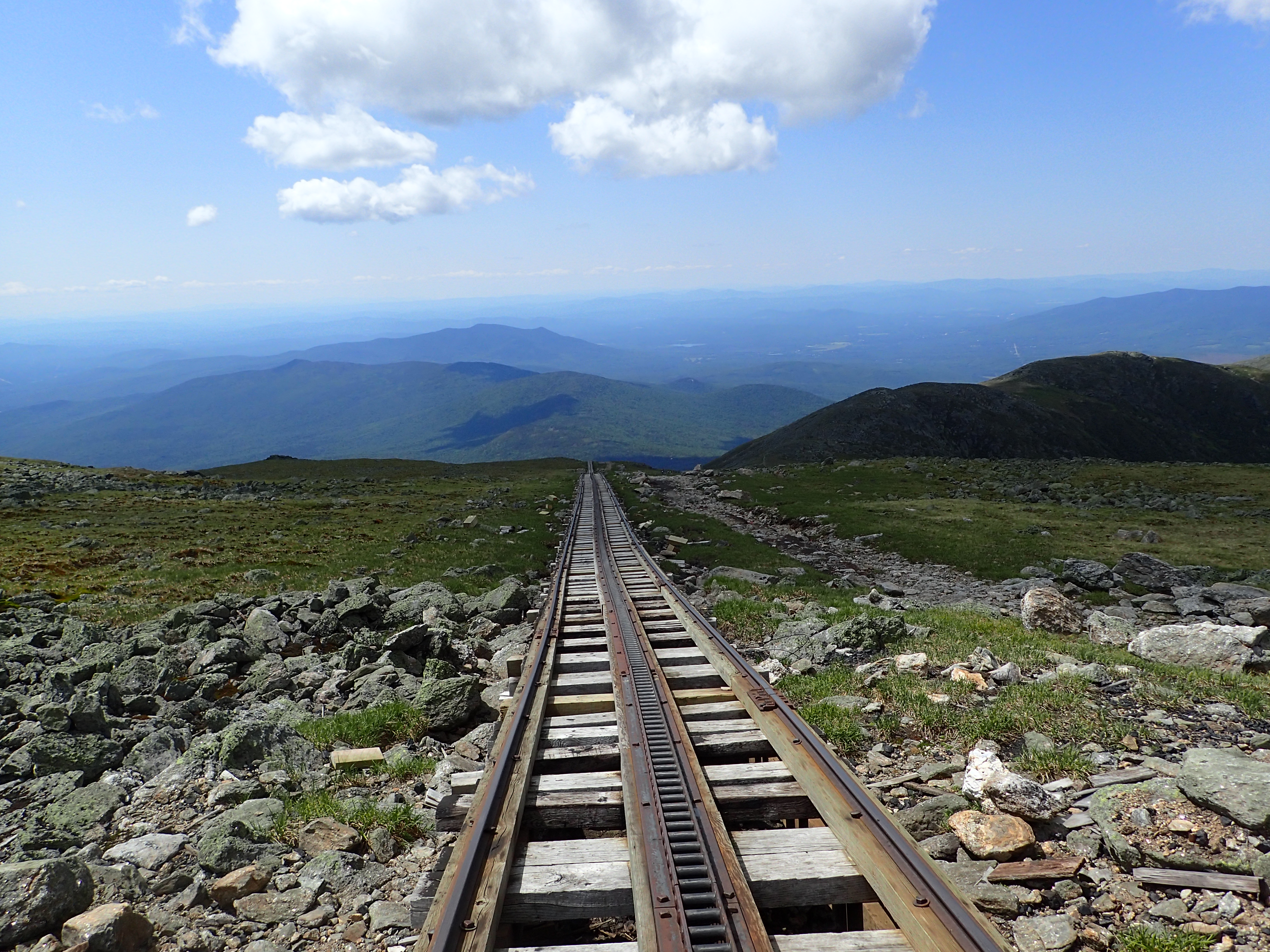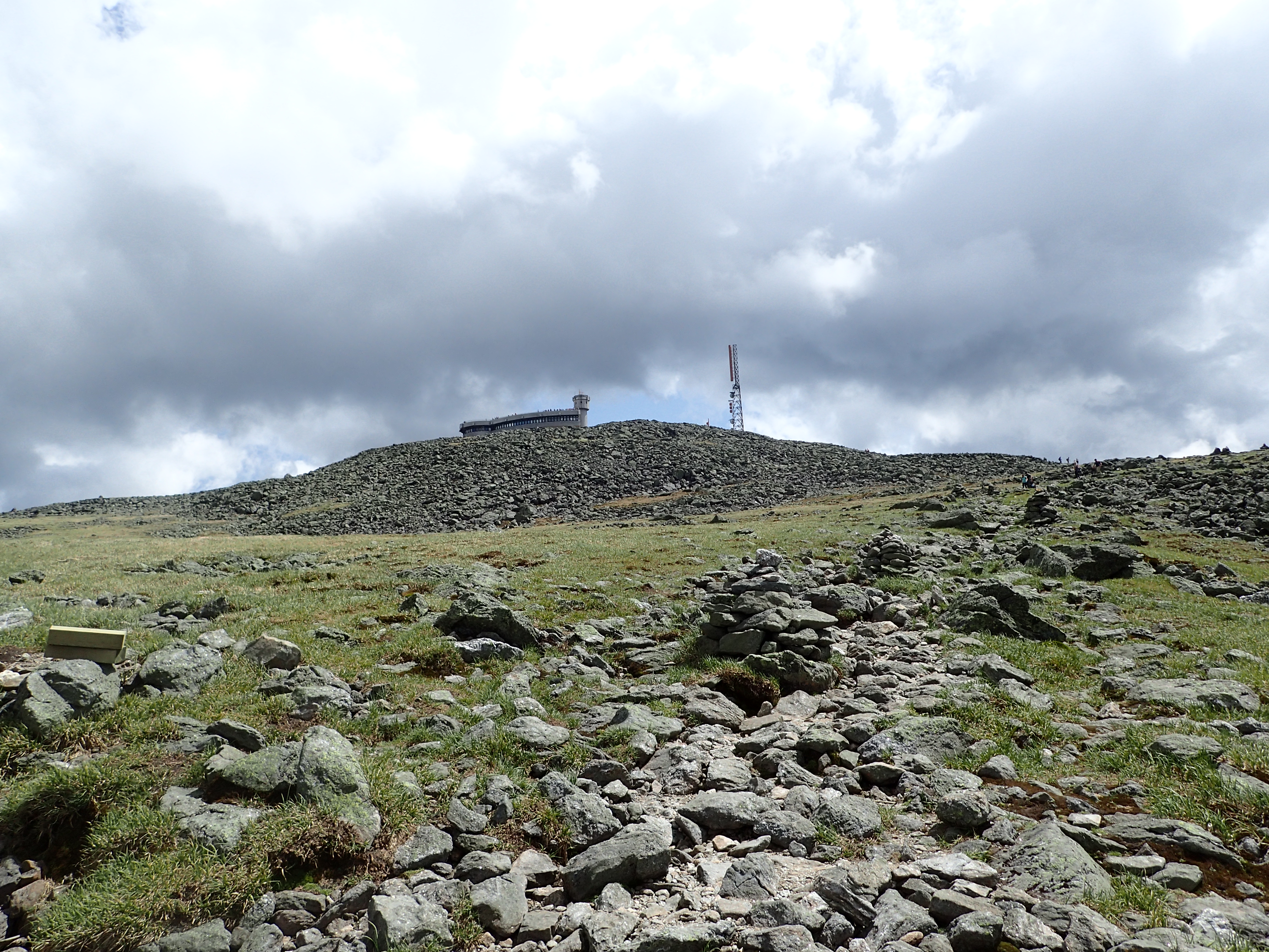 As we made our way up the final talus slope to the summit the structures on the top of Washington were teasingly close. There were also a ton of people coming up and down the trail at this point. Before too long I reached the Cog Railway line which you have to hike up and over to continue on your way towards the summit.