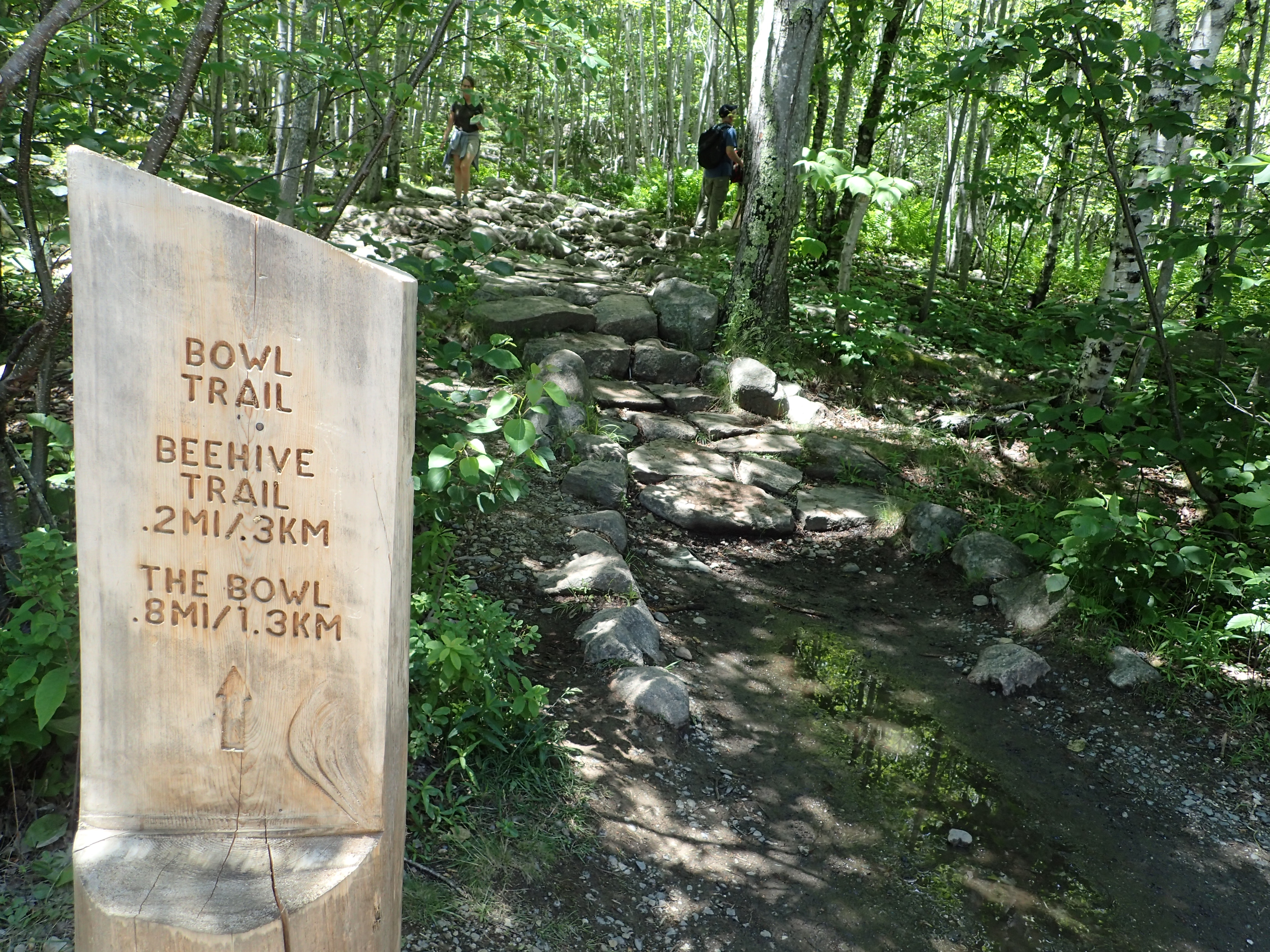 A short section of hiking along the rocky ridge of the Beehive lead us back down into the woods and on our way towards The Bowl, which is a small pond that sits between both mountains.