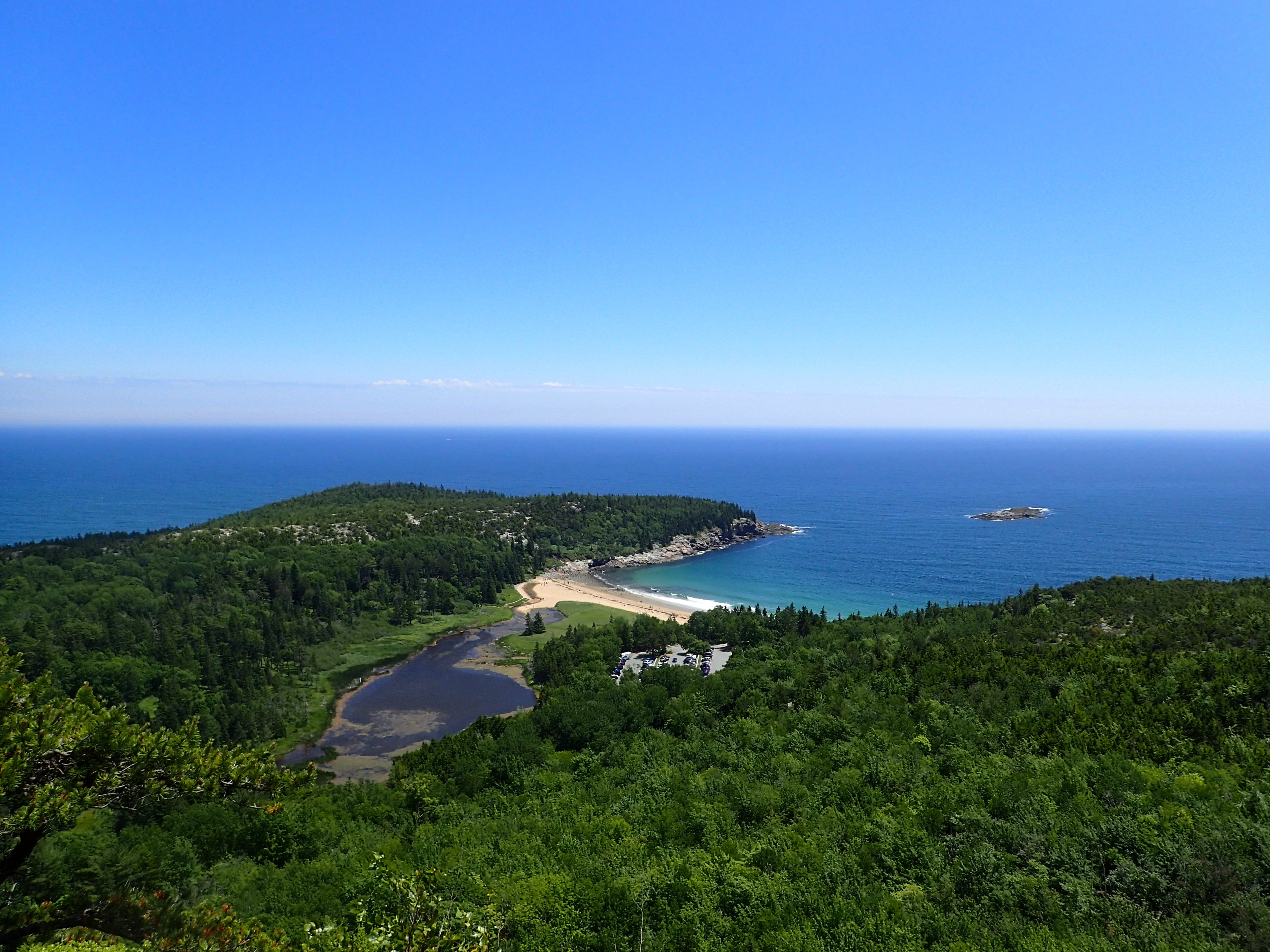 The hike starts just down the road on the right hand side right before you reach the signs pointing you towards the Sand Beach. A lot of the cars parked in the row were there for the Sand Beach so the trail was not nearly as crowded as it seemed like it might be. Although it also helped that we were starting fairly early which by Acadia standards is before noon.