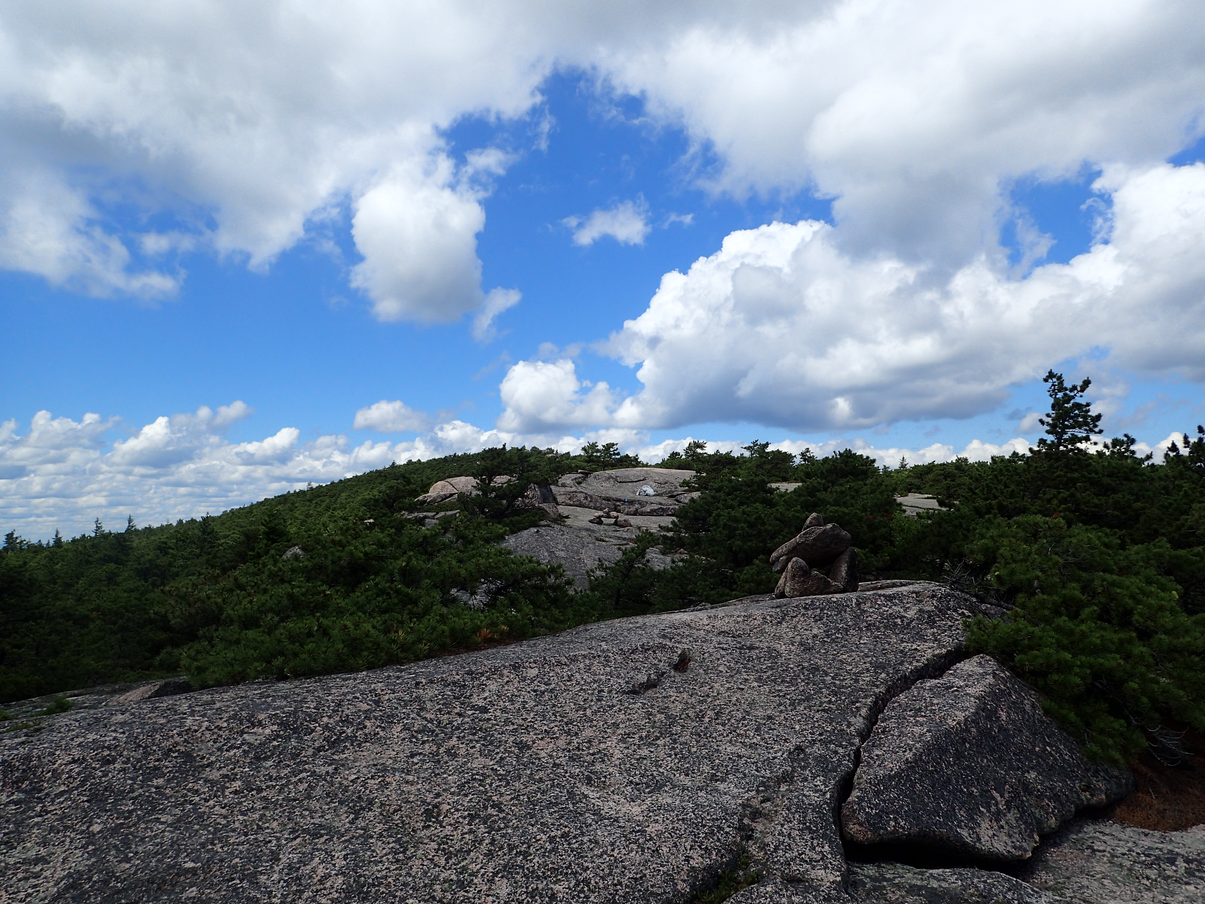 From here it is a pretty straight shot up the rocky ridge towards the summit of Champlain Mountain. The trail itself is marked with cairns and blue blazes which make it pretty easy to follow. There are a few parts where you need to scramble up a few rocks but for the most part it is a gentle hike up to the summit.