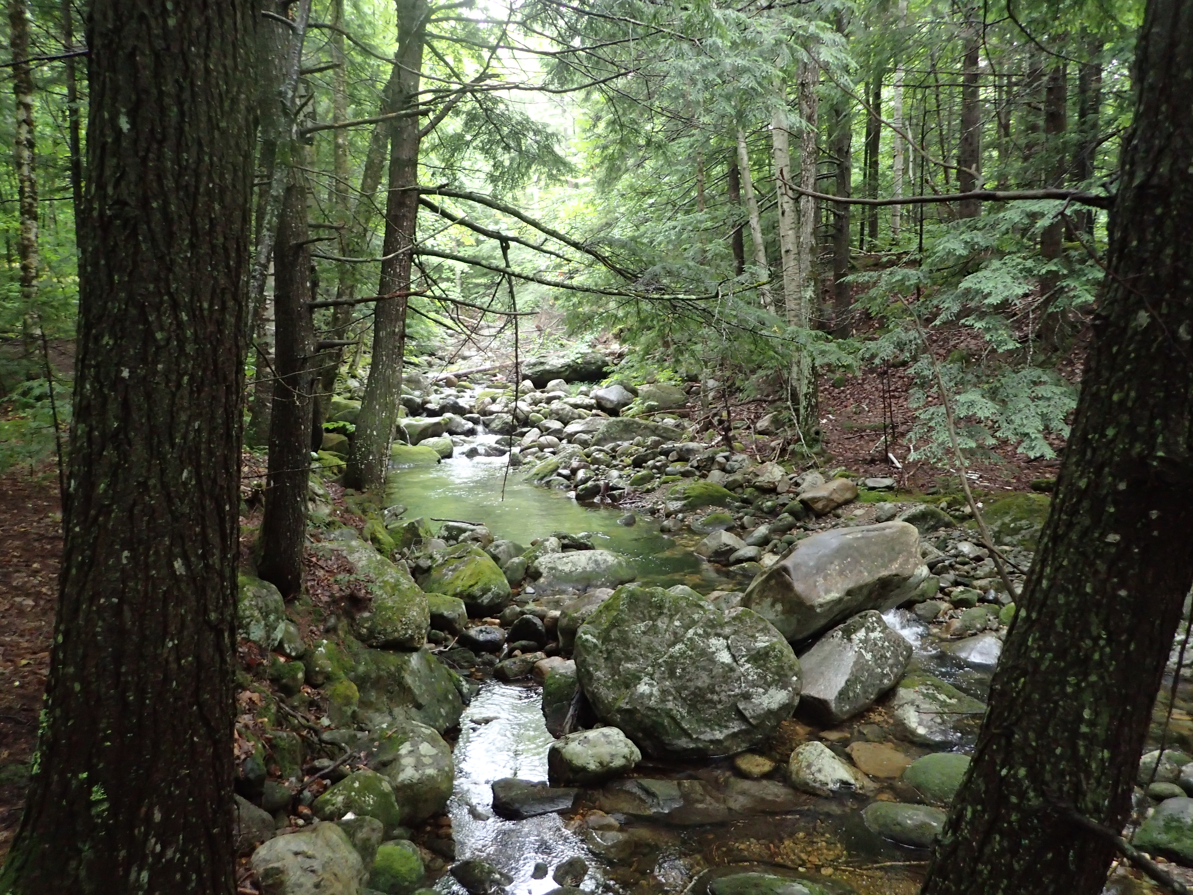 The beginning of the trail followed the brook as it wound its way up the slope towards the ridge and Mt Moriah beyond. The brook was very beautiful and made for a nice highlight to this otherwise boring section of flat trail. The trail also crosses the brook a few times early on but bridges make this no problem at all.