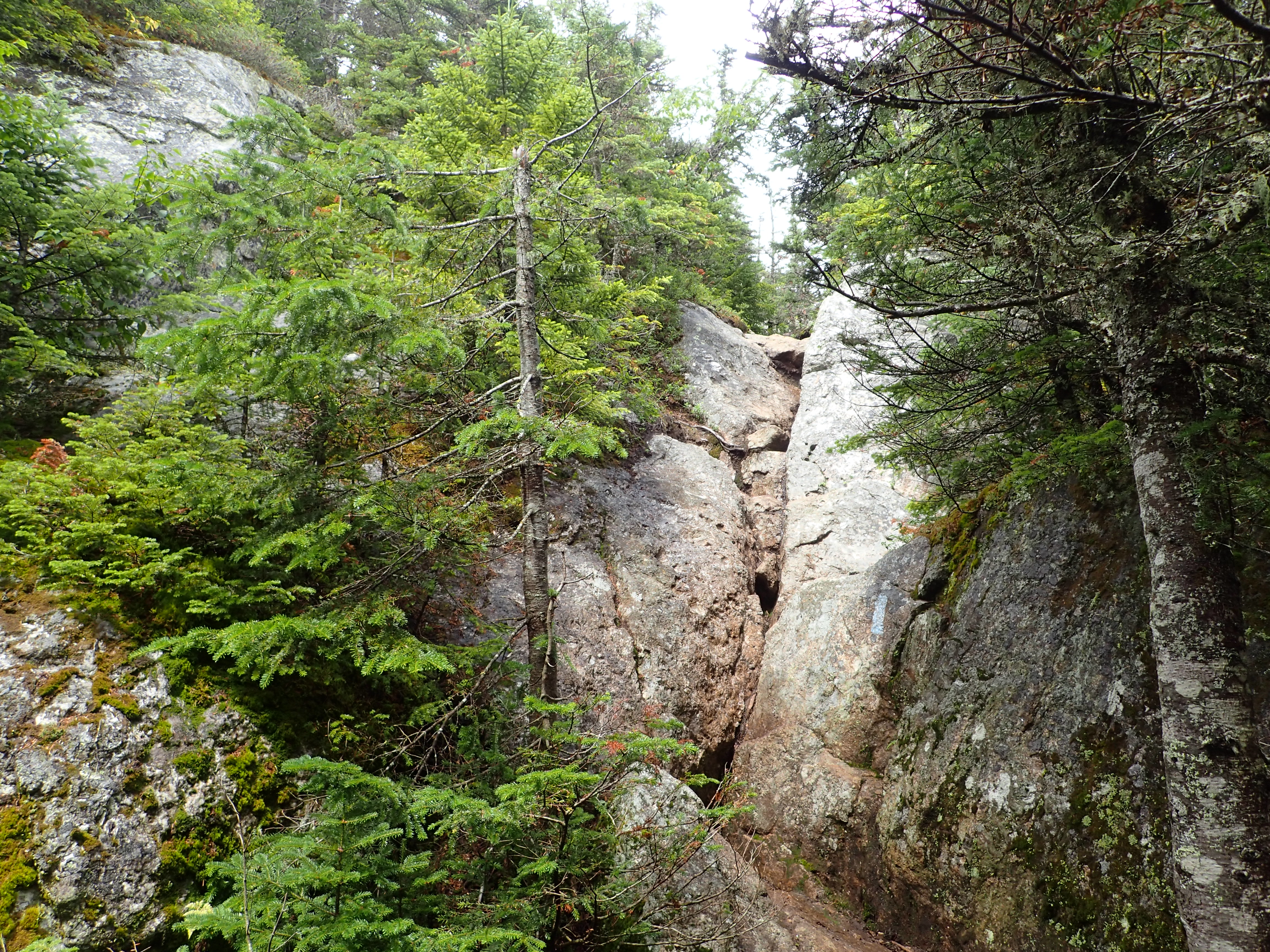 Once we reached the top of the ridge we were greeted by a trail sign marking the way towards the Carters to the right and Mt Moriah to the left. We made the left towards Mt Moriah and quickly came to another junction. At this second junction we continued straight along the ridge. From this point on the trail became much more interesting with many rock slabs to navigate and other interesting features. This was definitely the most challenging section of hiking on the day.