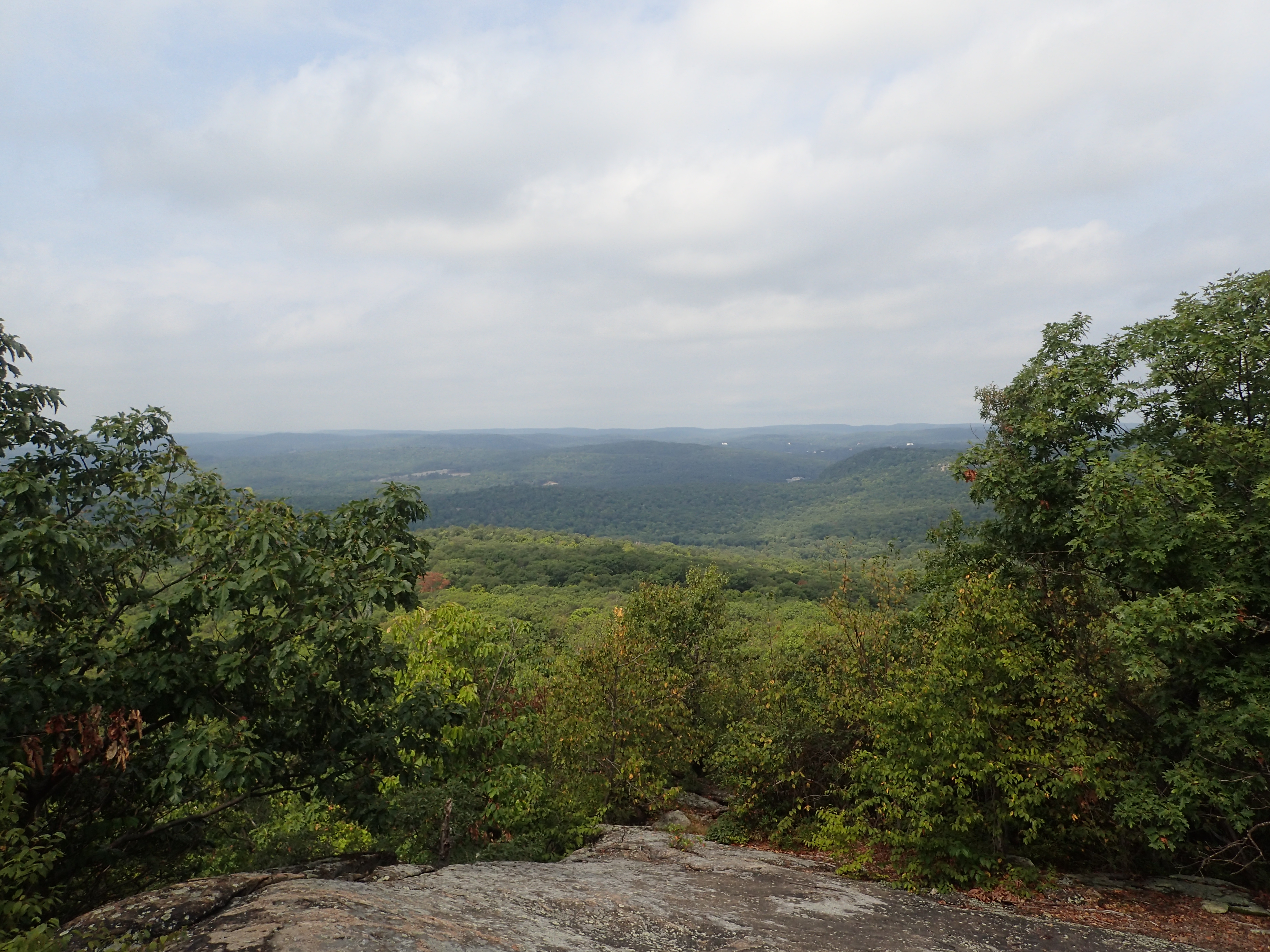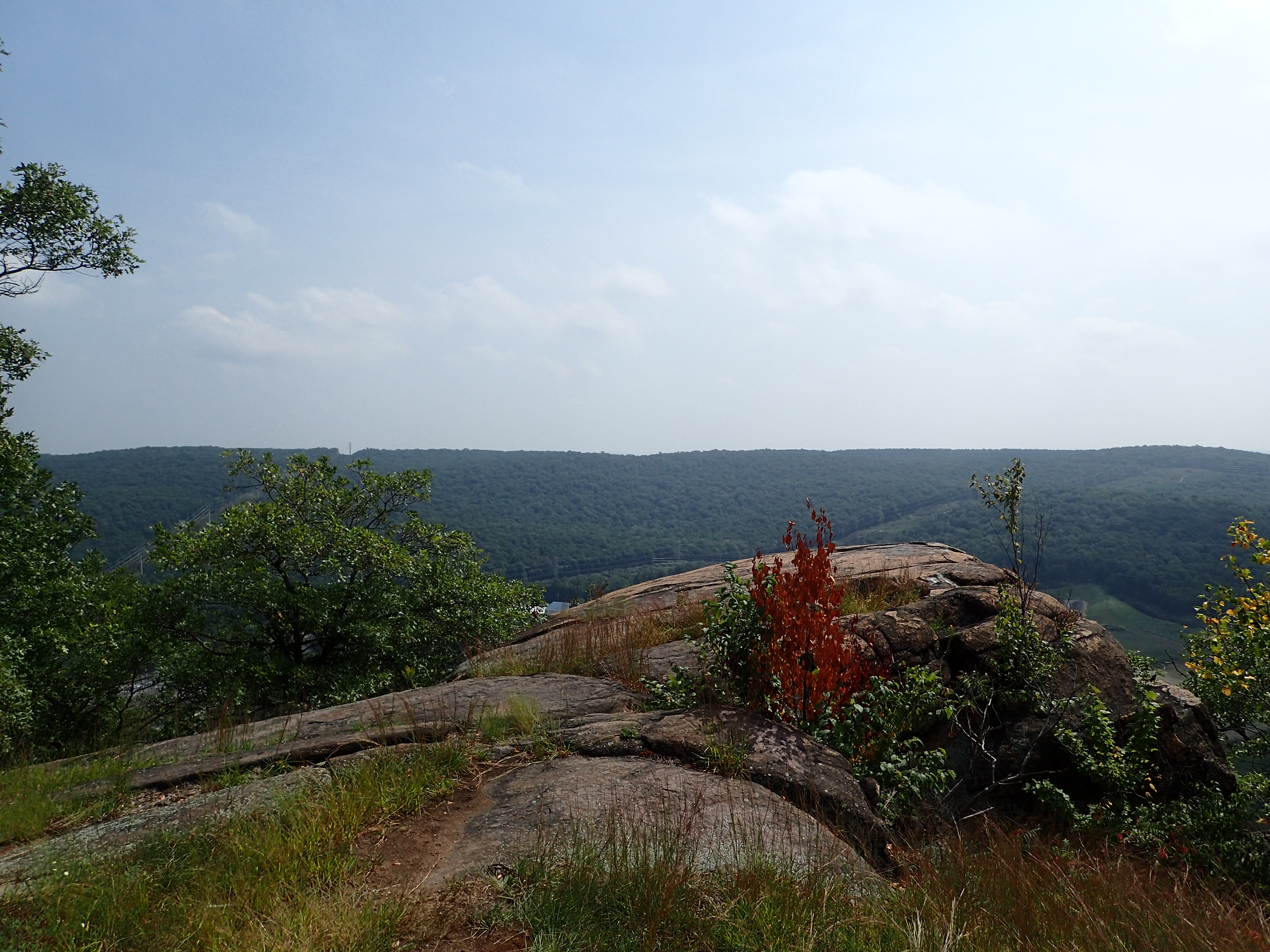 Before too long I reached the end of the traverse along the hills and a large slab where other people were hanging out to enjoy the views. From here the trail dropped steeply back down into the valley on its way towards the Ramapo Torne.