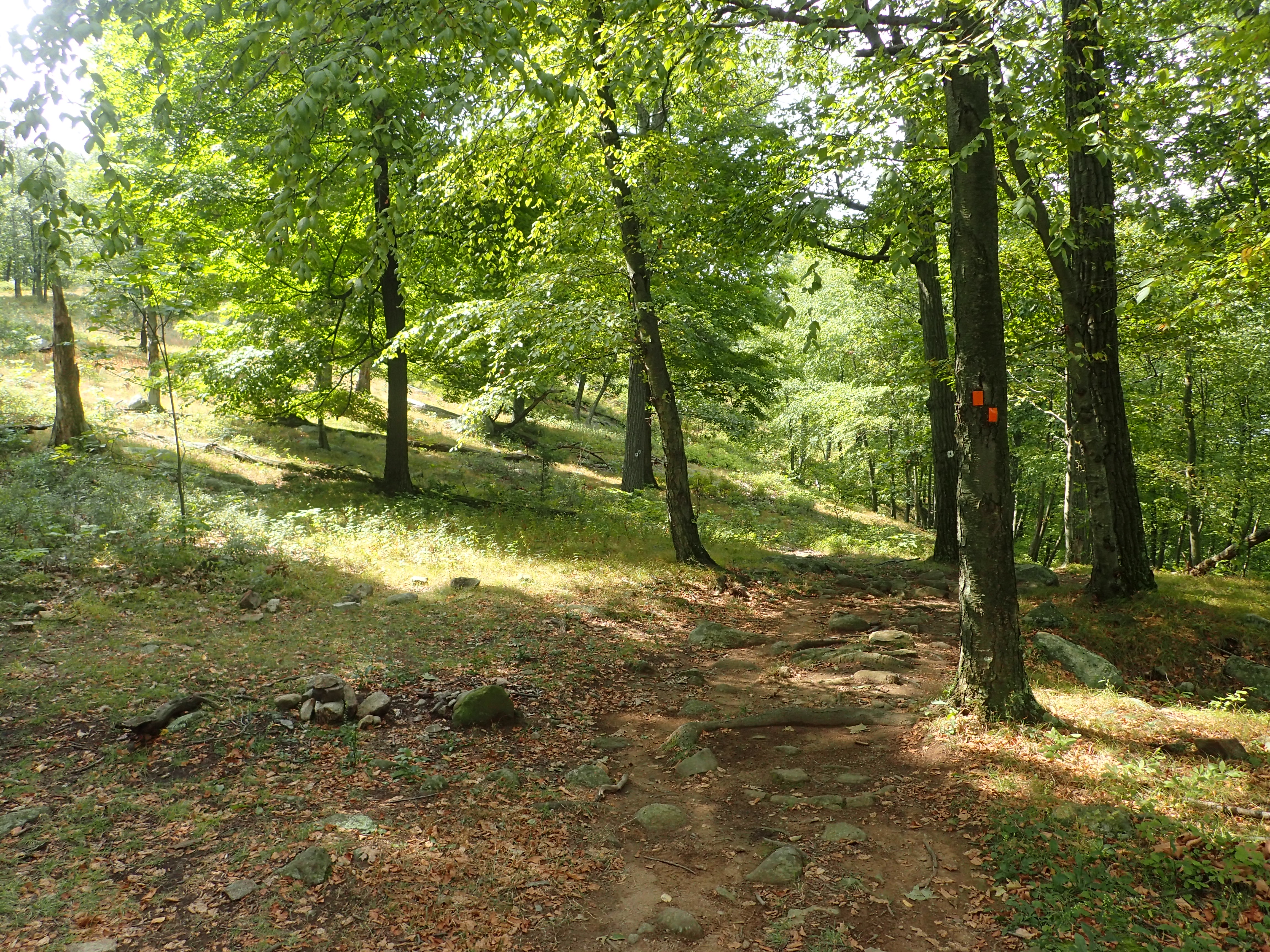 Once on top of the hill I reached the junction of the Orange and Blue trails and stayed to my right as I followed the trail which was marked with both Orange and Blue blazes.