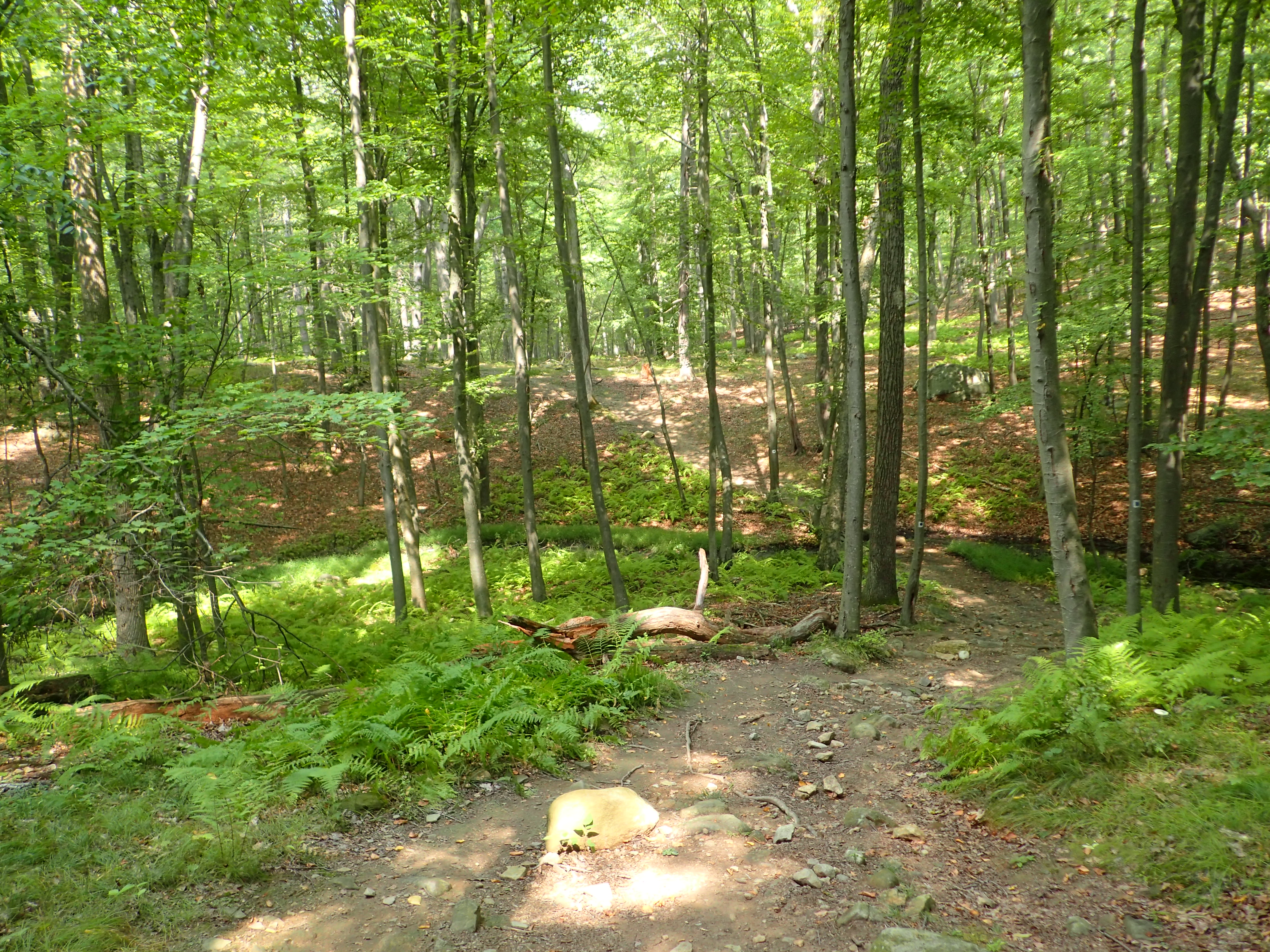 After passing this junction the grade increased slightly as the trail worked its way up the hill. There were a fair number of people out on this particular day despite the heat but overall everyone was pretty spaced out so the day never felt particularly crowded which was nice. What I have learned from my few hikes in Harriman is that the further away you get from the parking lots and trailhead, the less people you can expect to see.
