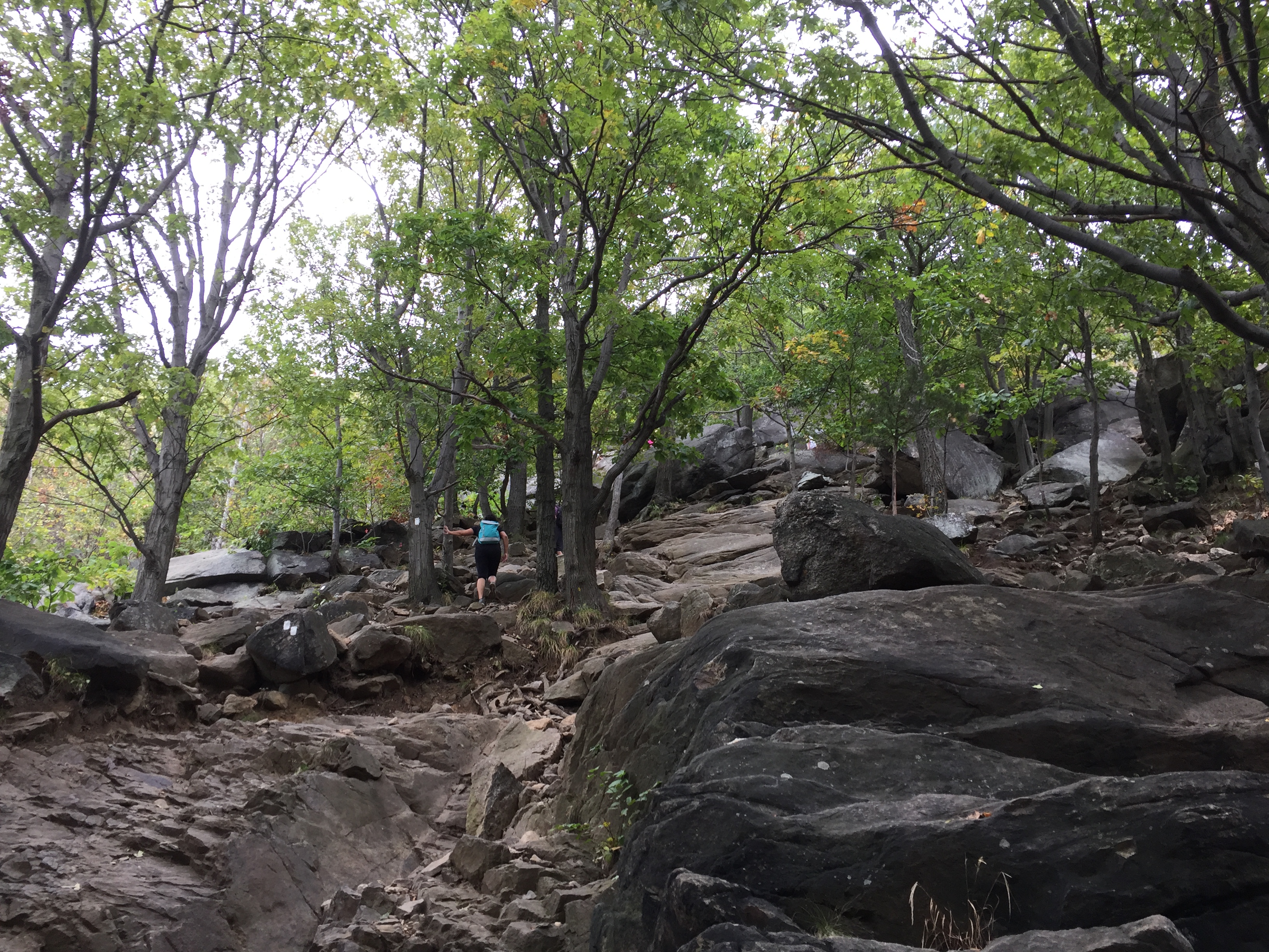 After passing this last section of scrambling we were back to hiking in the woods and heading towards the final steep section of hiking along the ridge.