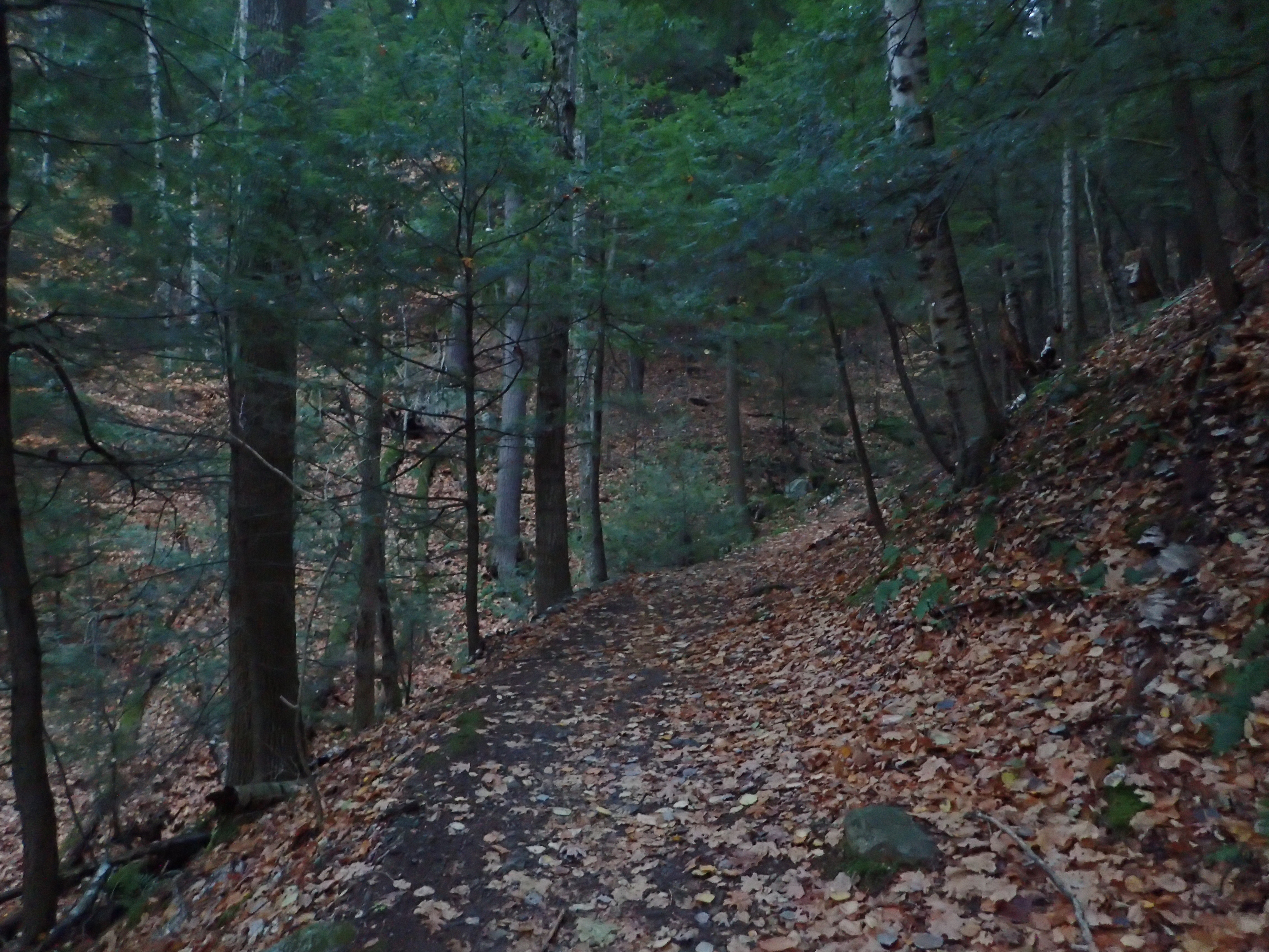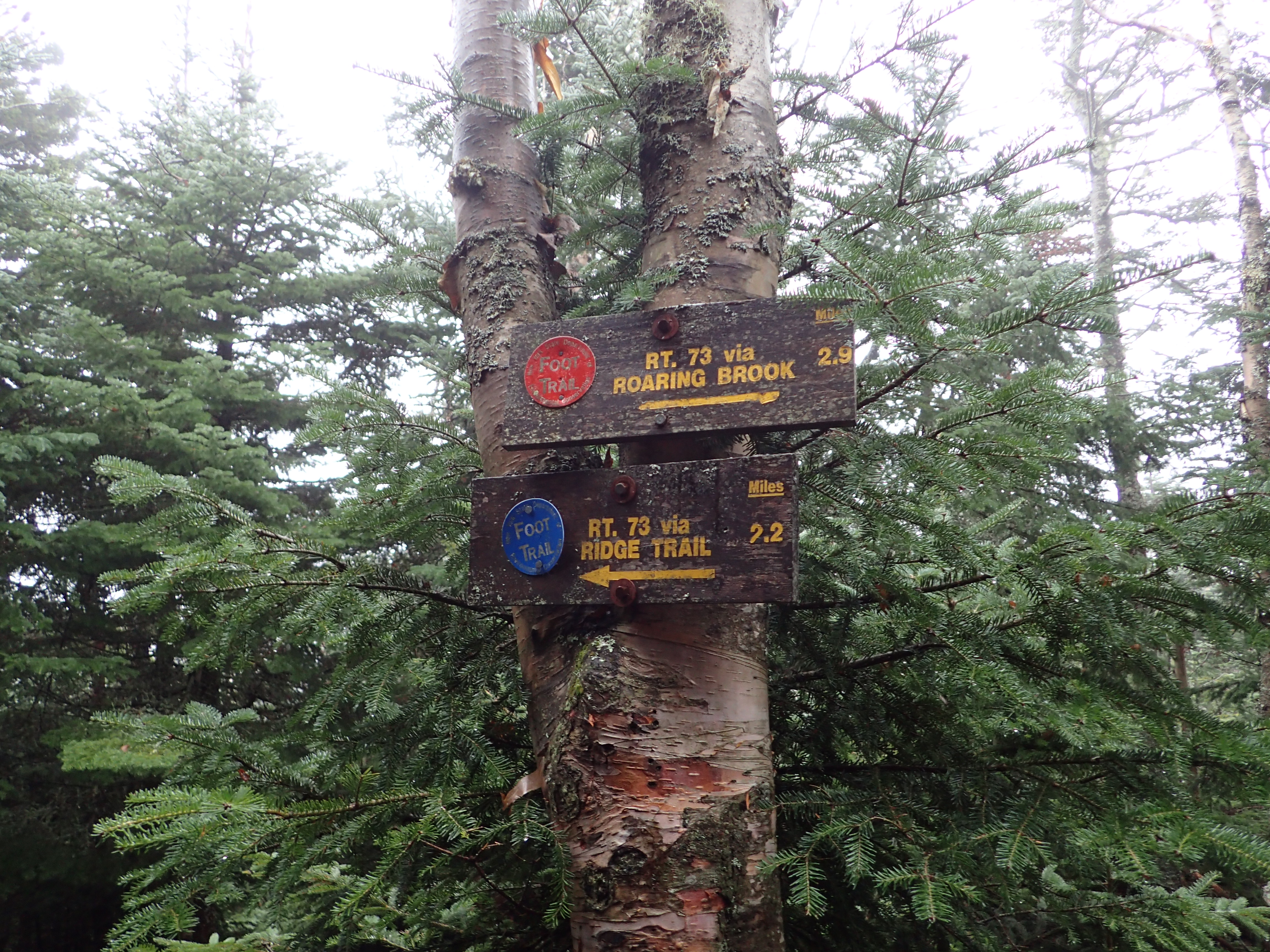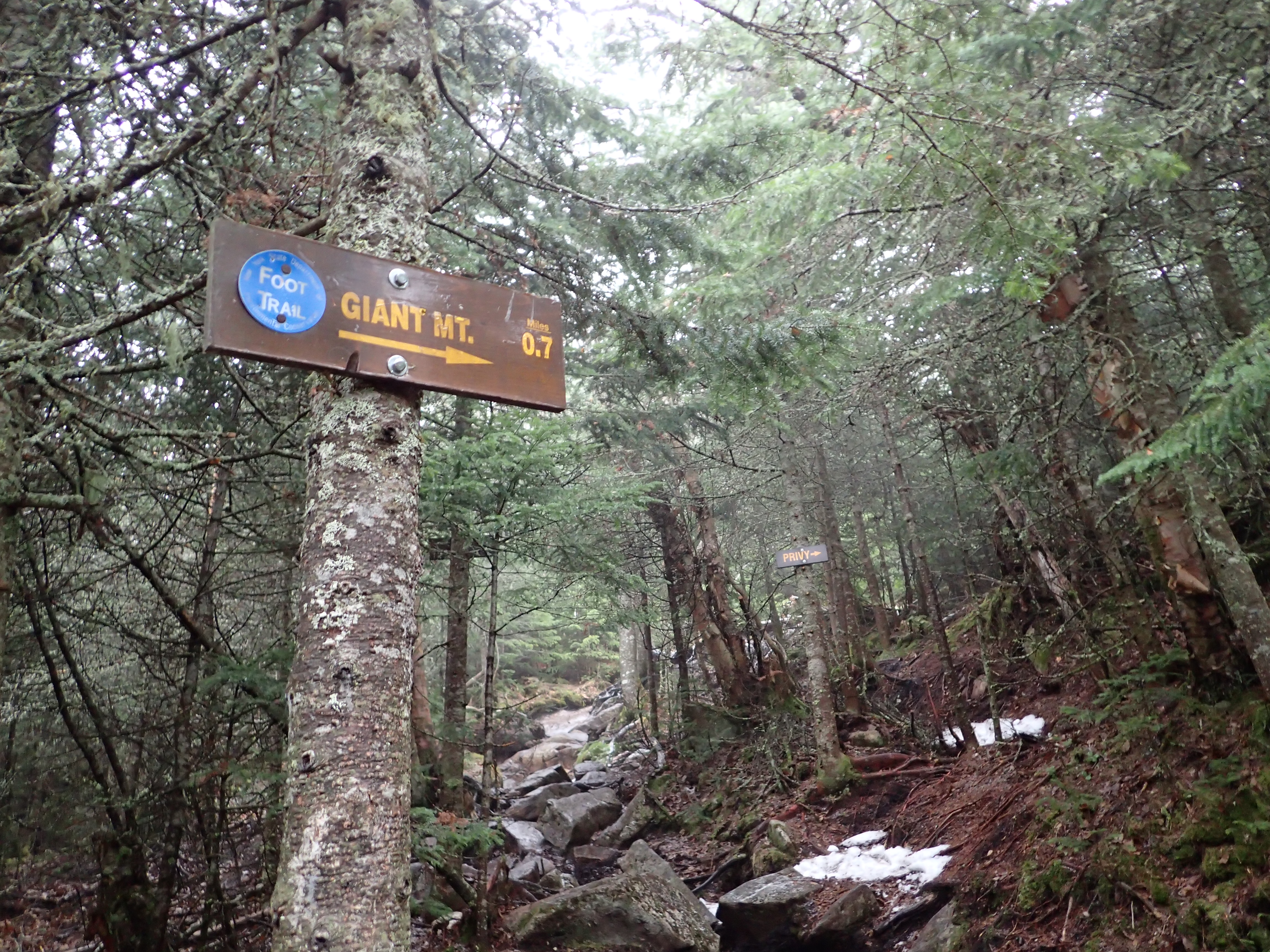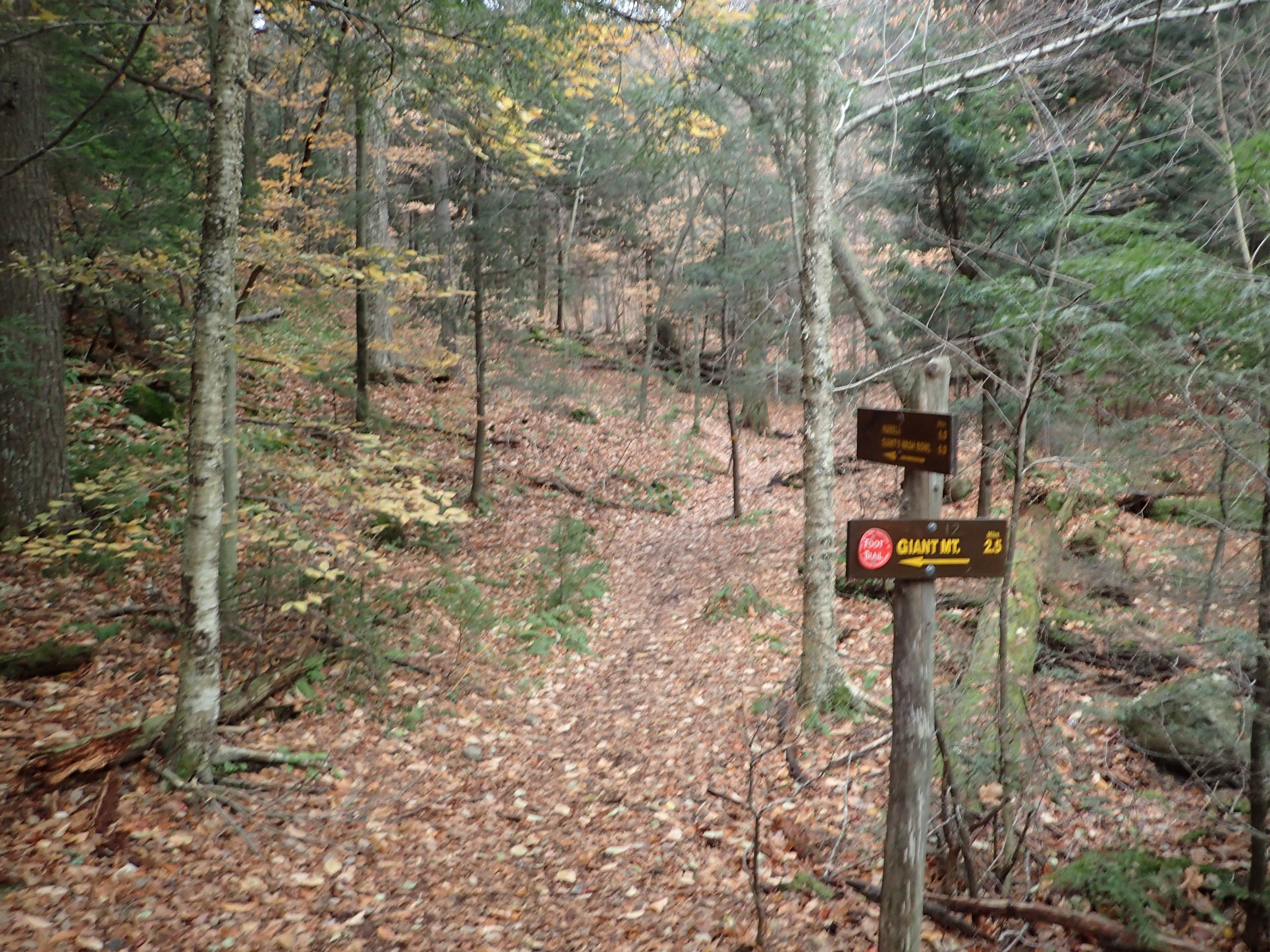 After passing the trail register a minute down the trail you reach the first junction on the hike. From here turning left will take you up towards Giant and going right will take you to the base of Roaring Brook Falls. We hung a left and started up the trail.
