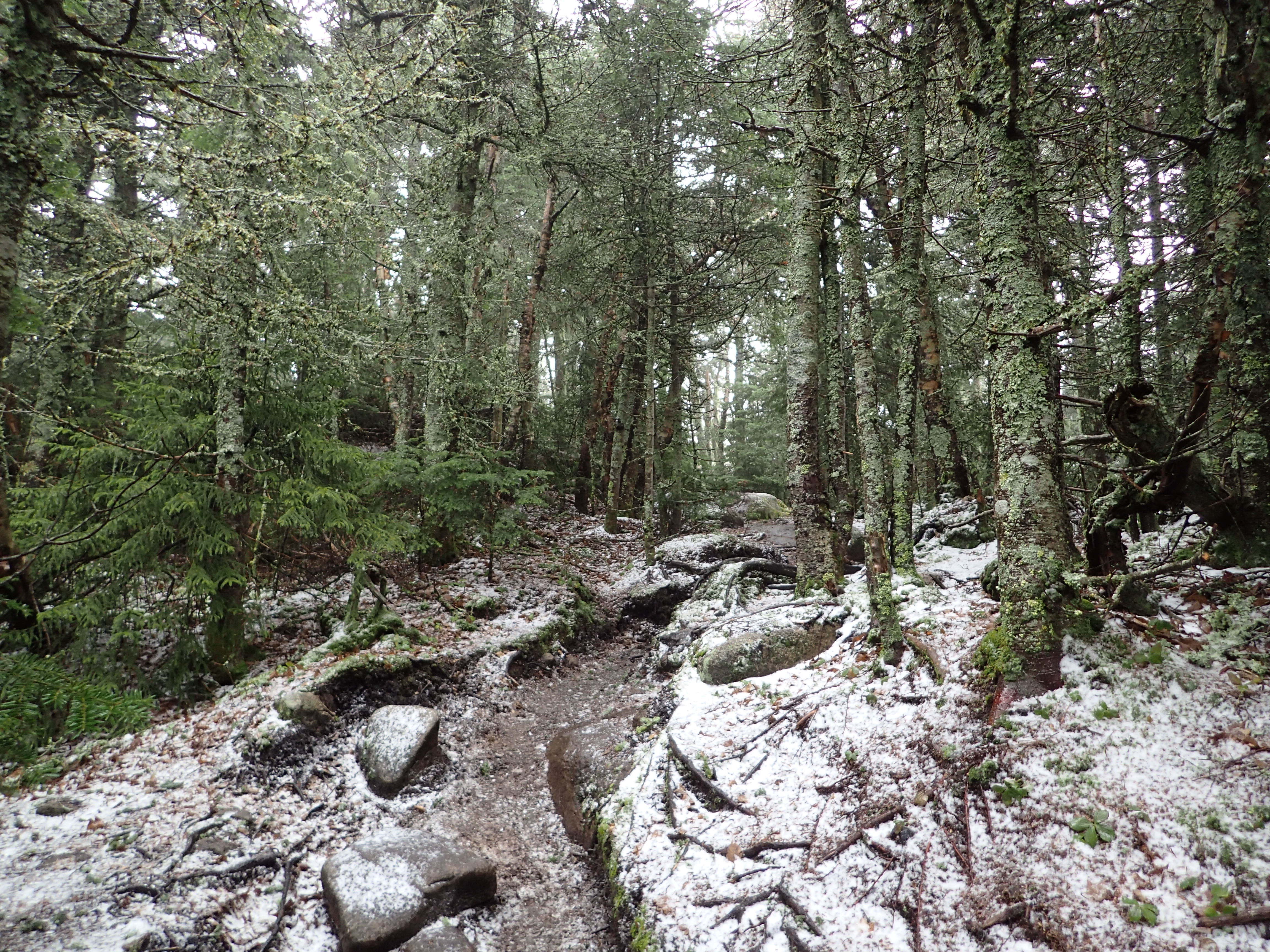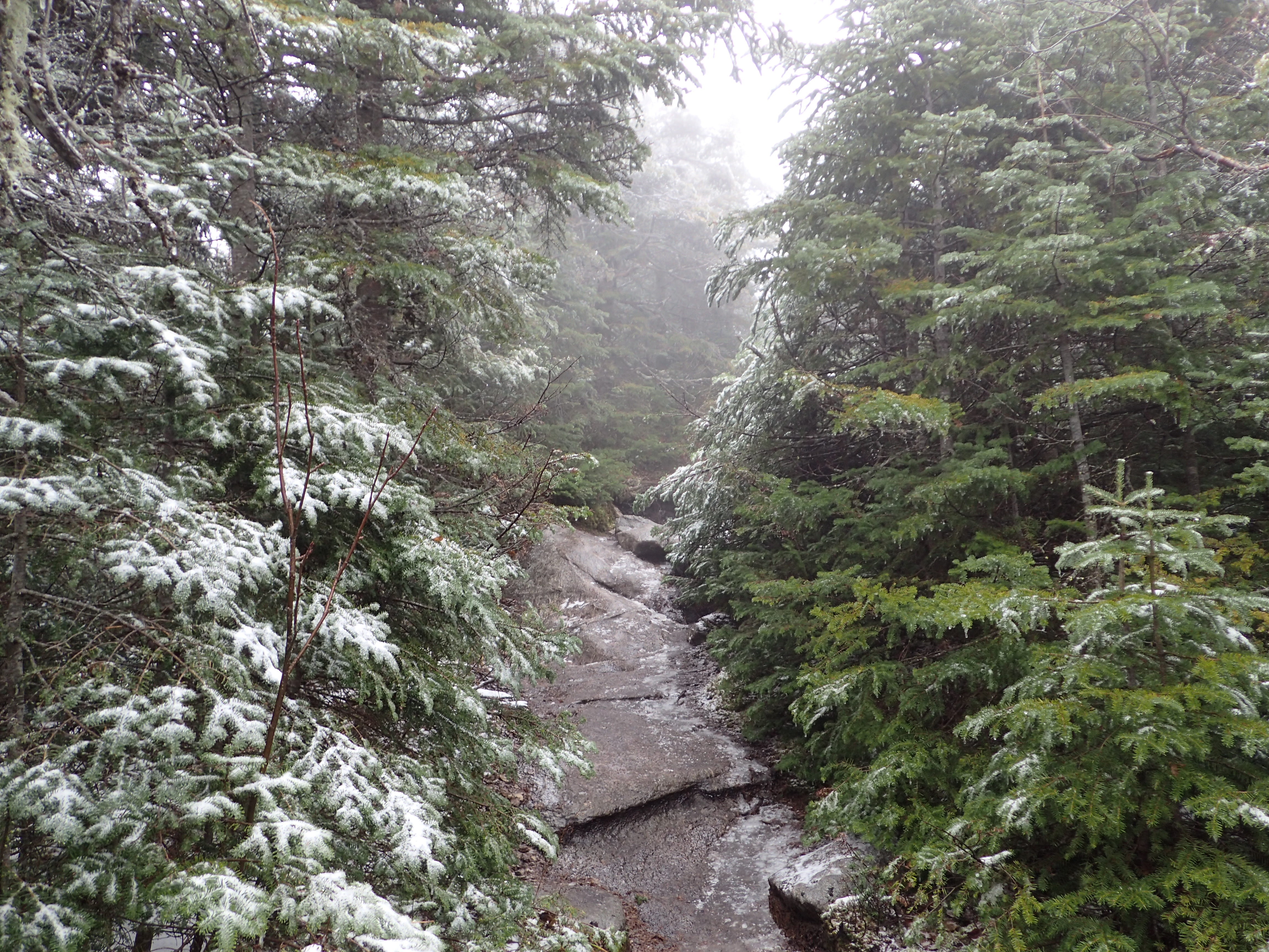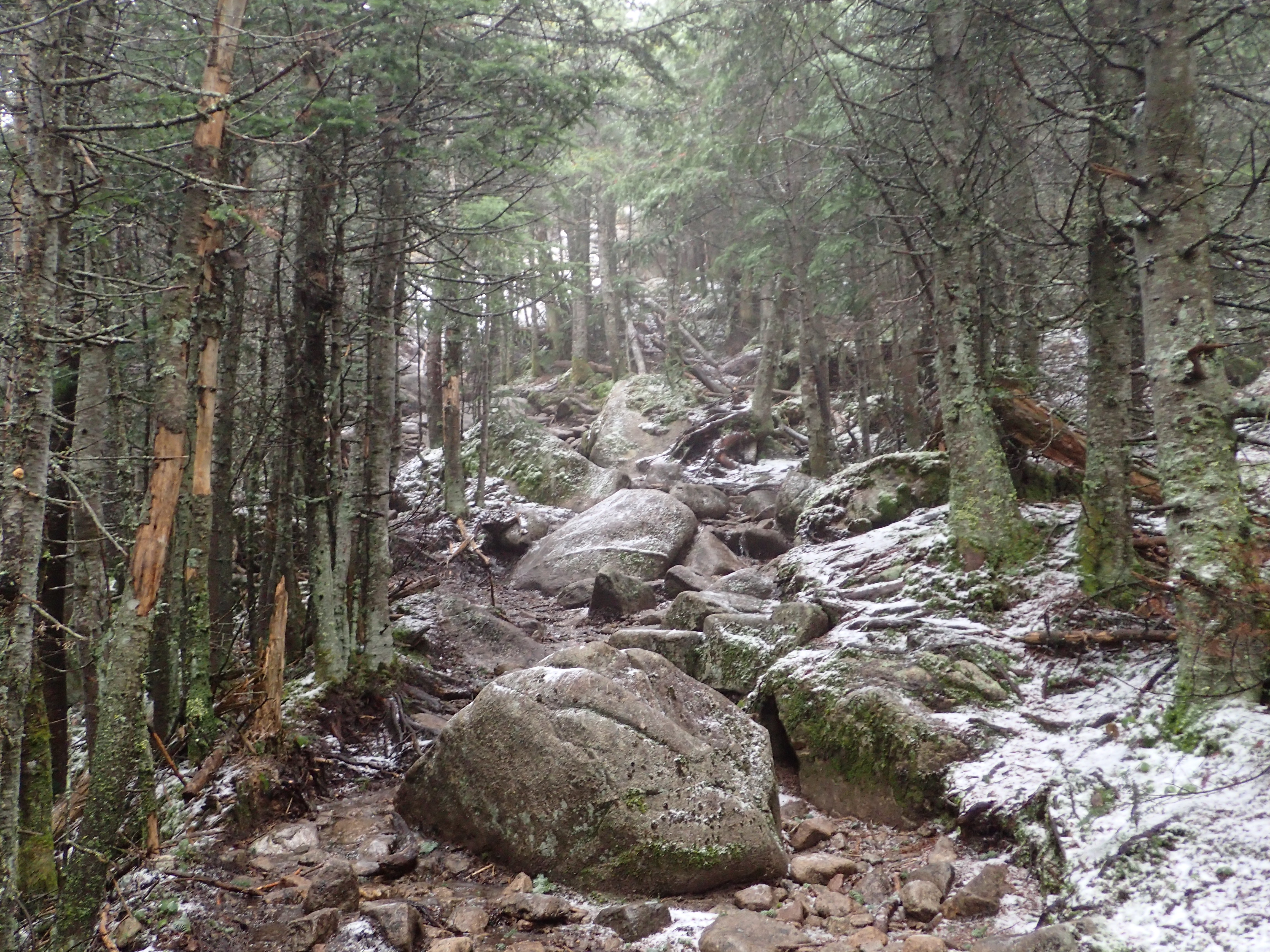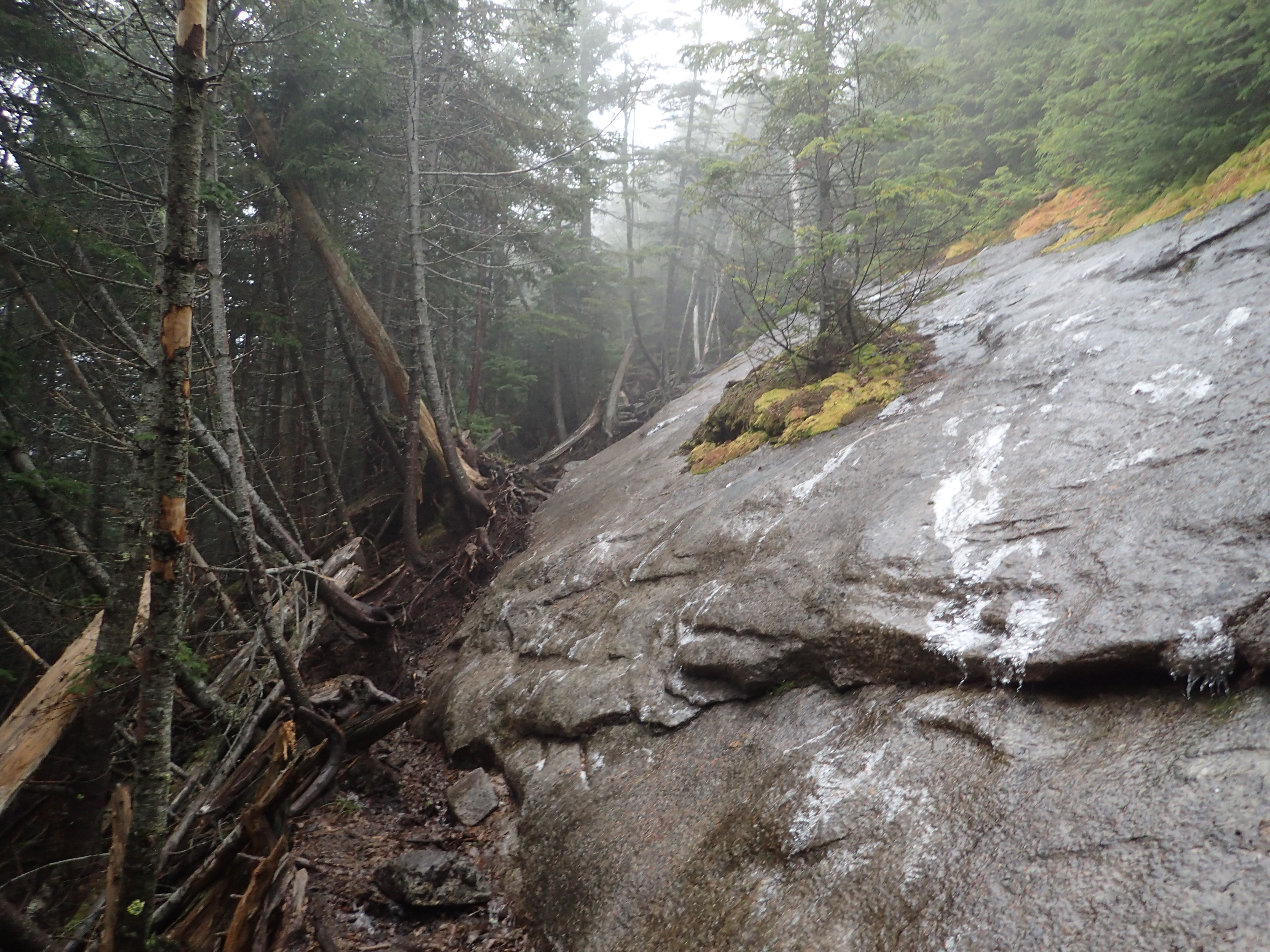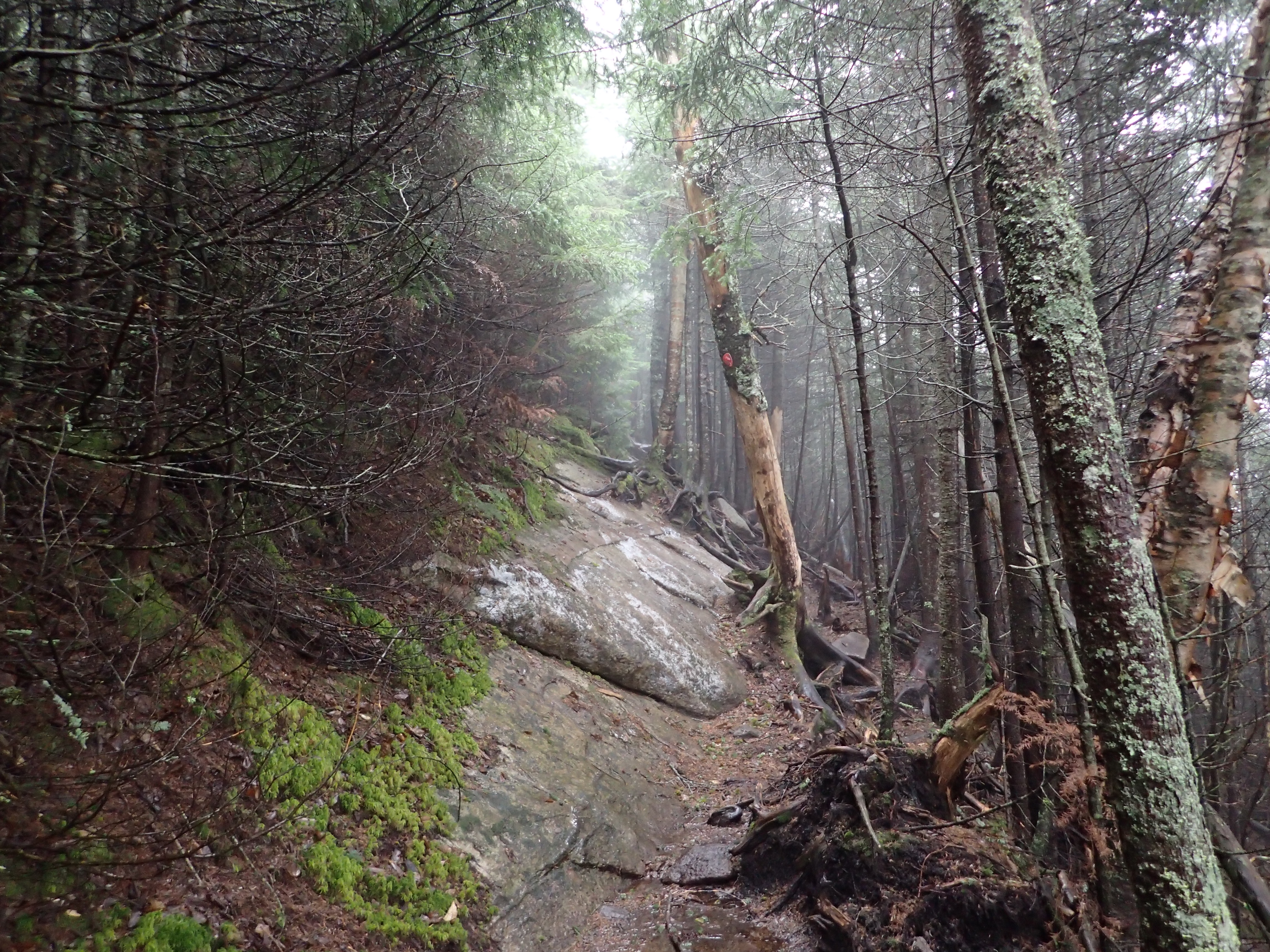 After getting past this obstacle we continued along the trail passing other smaller slabs as the trail got increasingly rugged. The weather also seemed to be getting worse and worse with every little bit of elevation gain.