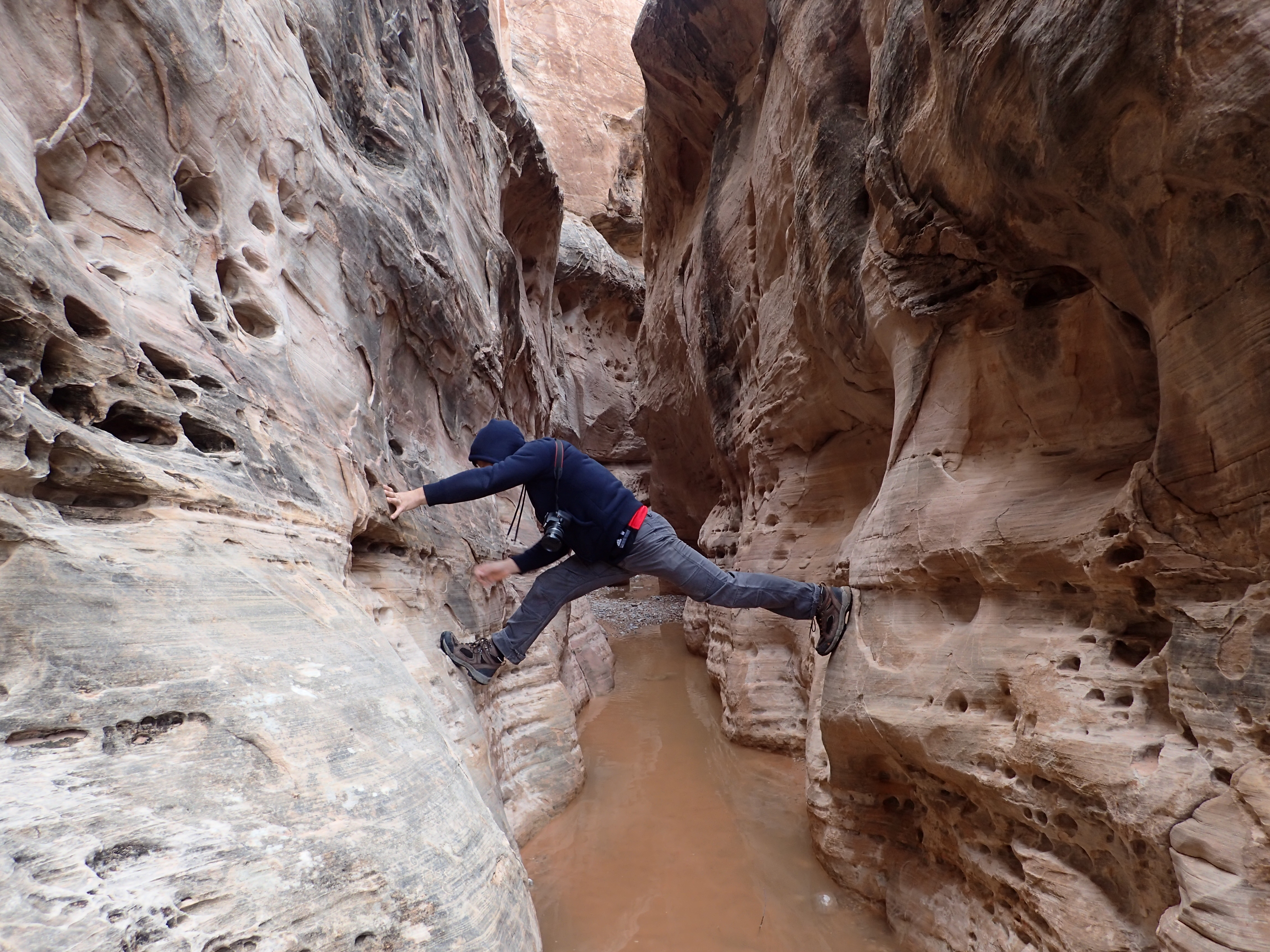 Small slot canyon along the trail, you can avoid this entirely by walking around but why would you want to!